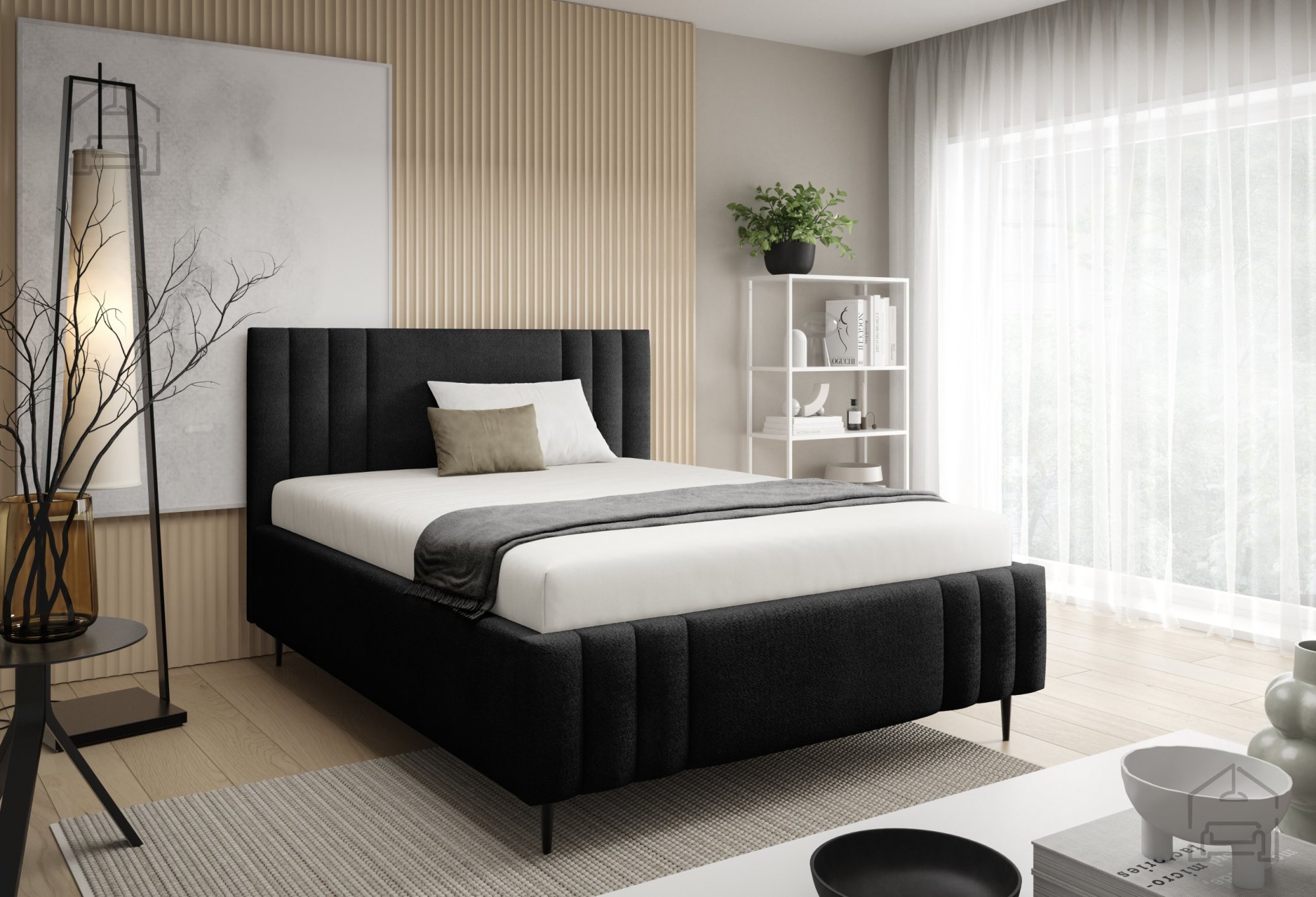Postelja Ribo z nogicami je sodoben in funkcionalen kos pohištva, ki združuje prijetno estetiko oblazinjenega pohištva z uporabnostjo premišljenih detajlov. Izdelana je v Poljski, v tovarni Meble Gruška, ki je znana po kakovostni obdelavi materialov in natančni končni izdelavi. Tapeciran lesen okvir poskrbi za toplino in udobno vizualno prisotnost, medtem ko črne kovinske noge ustvarjajo kontrast ter zagotavljajo stabilnost in sodoben videz.