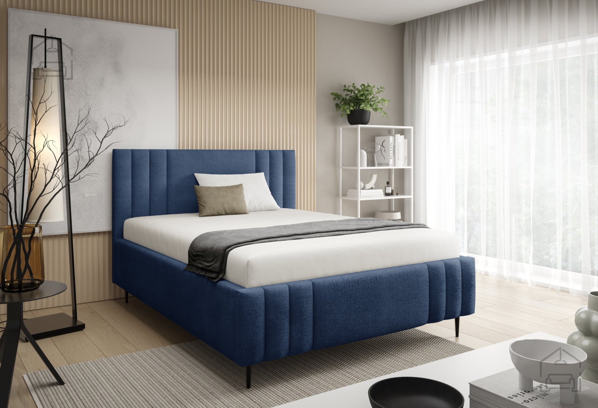 Kovinske noge omogočajo dovolj prostora pod posteljo za čiščenje ali kroženje zraka, kar dodatno prispeva k higieni spalnega prostora. Izbira več barvnih različic daje možnost, da posteljo prilagodite tako svetlim kot temnim interierjem. V kombinaciji z minimalističnimi nočnimi omaricami ali lesenimi komodami ustvarja harmoničen videz spalnice.