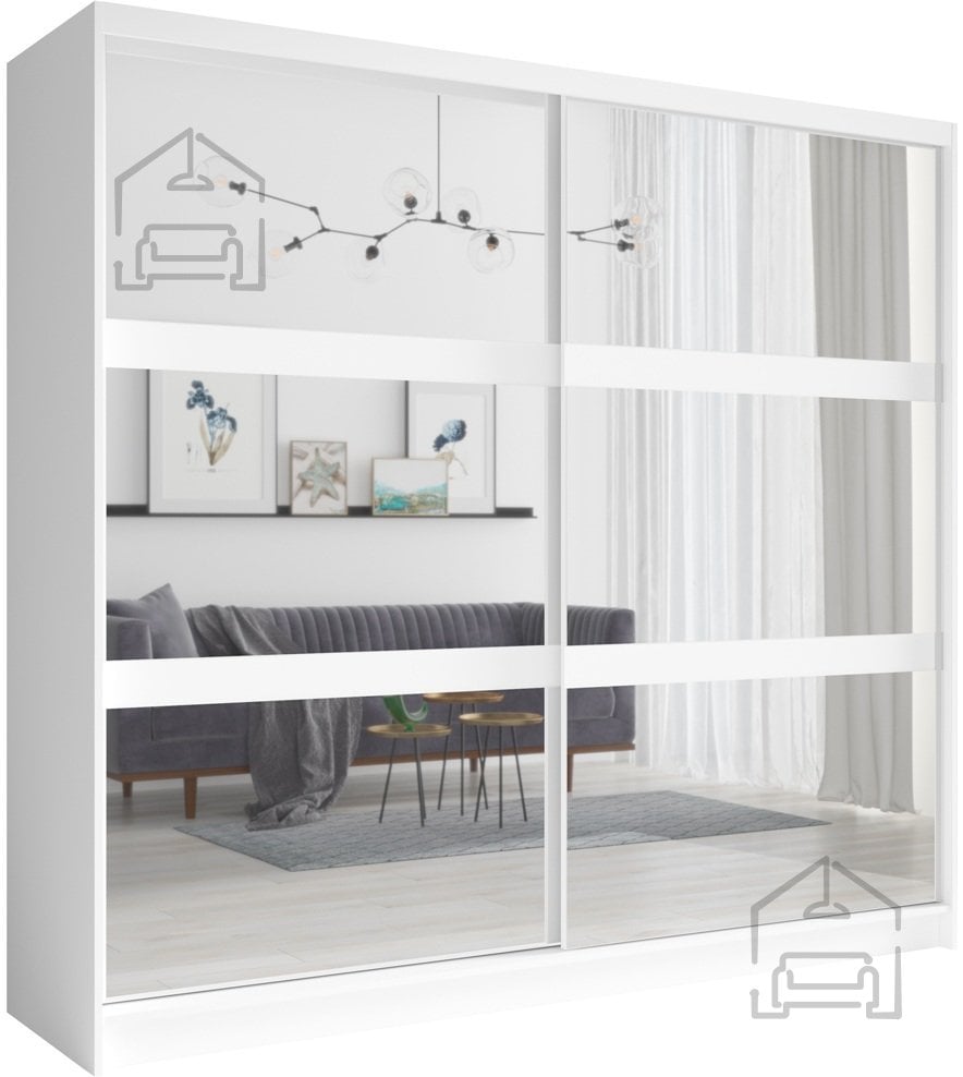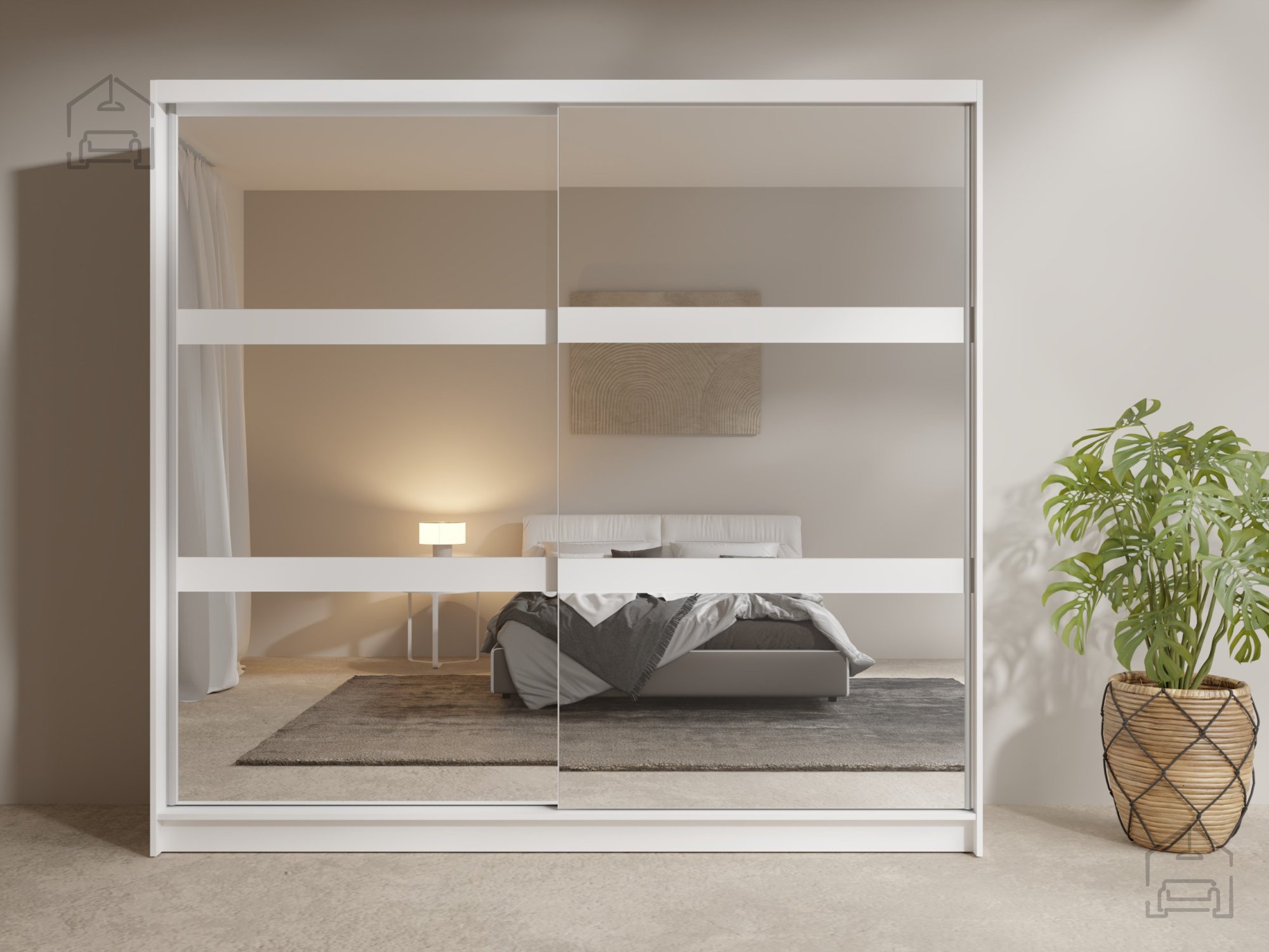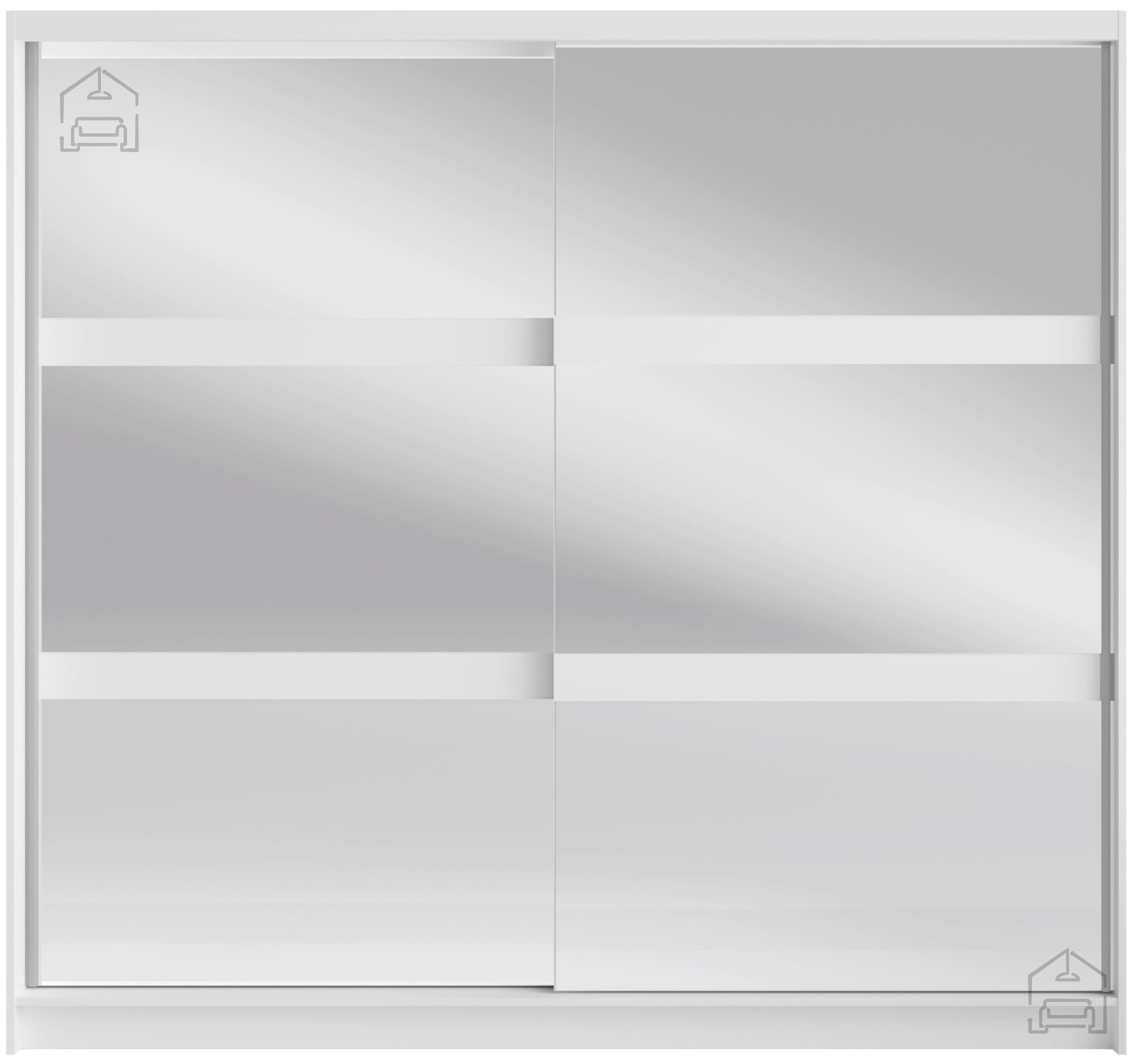 Bela barva garderobne omare Fino prinaša v prostor občutek svežine, čistoče in vizualne prostornosti. Nevtralna barvna zasnova omogoča enostavno kombiniranje z različnimi stili notranje opreme – od minimalističnega skandinavskega videza do klasične elegance. Aluminijasti ročaji poudarjajo sodoben značaj omare, hkrati pa omogočajo udobno odpiranje drsnih vrat.