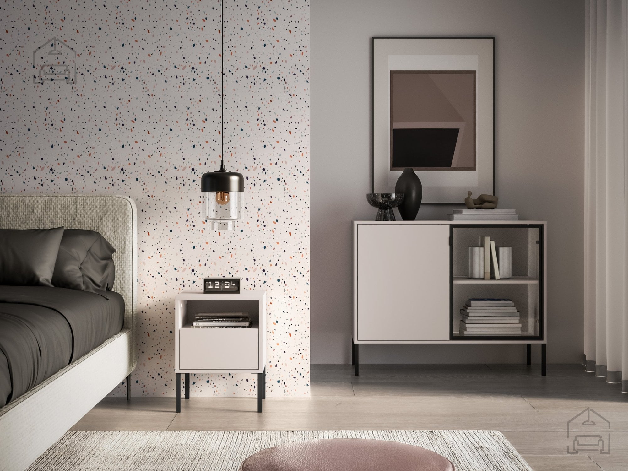 Omarica Barnee 05 je del kolekcije, ki sledi sodobnim oblikovalskim smernicam minimalističnega in elegantnega sloga. Barva kašmir se odlično ujema s črnimi poudarki, ki ustvarijo subtilen kontrast in dodajo pridih modernosti. Zaradi uravnoteženega razmerja med toplimi in hladnimi toni se omarica zlahka vključi v različne barvne sheme spalnic – od svetlih, skandinavskih ambientov do temnejših, industrijsko navdihnjenih prostorov.