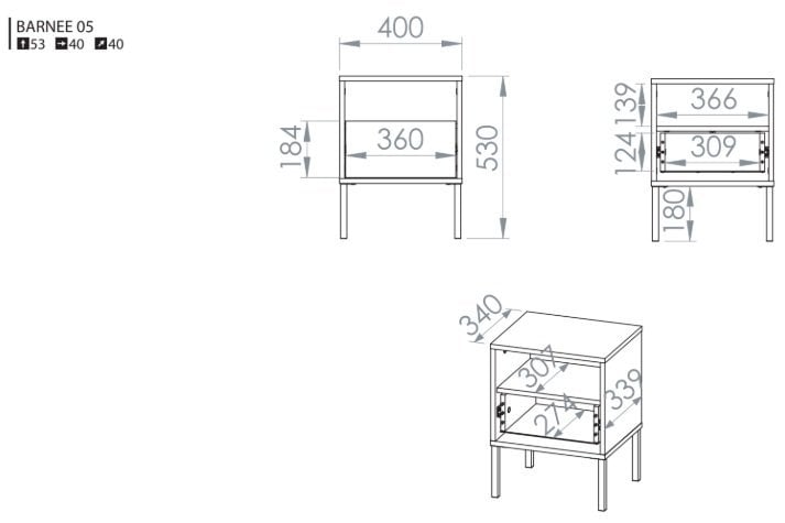 Vsaka podrobnost omarice Barnee 05 je premišljena – od izbire barv do načina odpiranja predalov. Kovinski okvir zagotavlja trdnost, hkrati pa daje pohištvu eleganten industrijski pridih. Višina omarice omogoča udobno uporabo ob večini standardnih postelj, njene kompaktne mere pa jo naredijo idealno tudi za manjše spalnice.