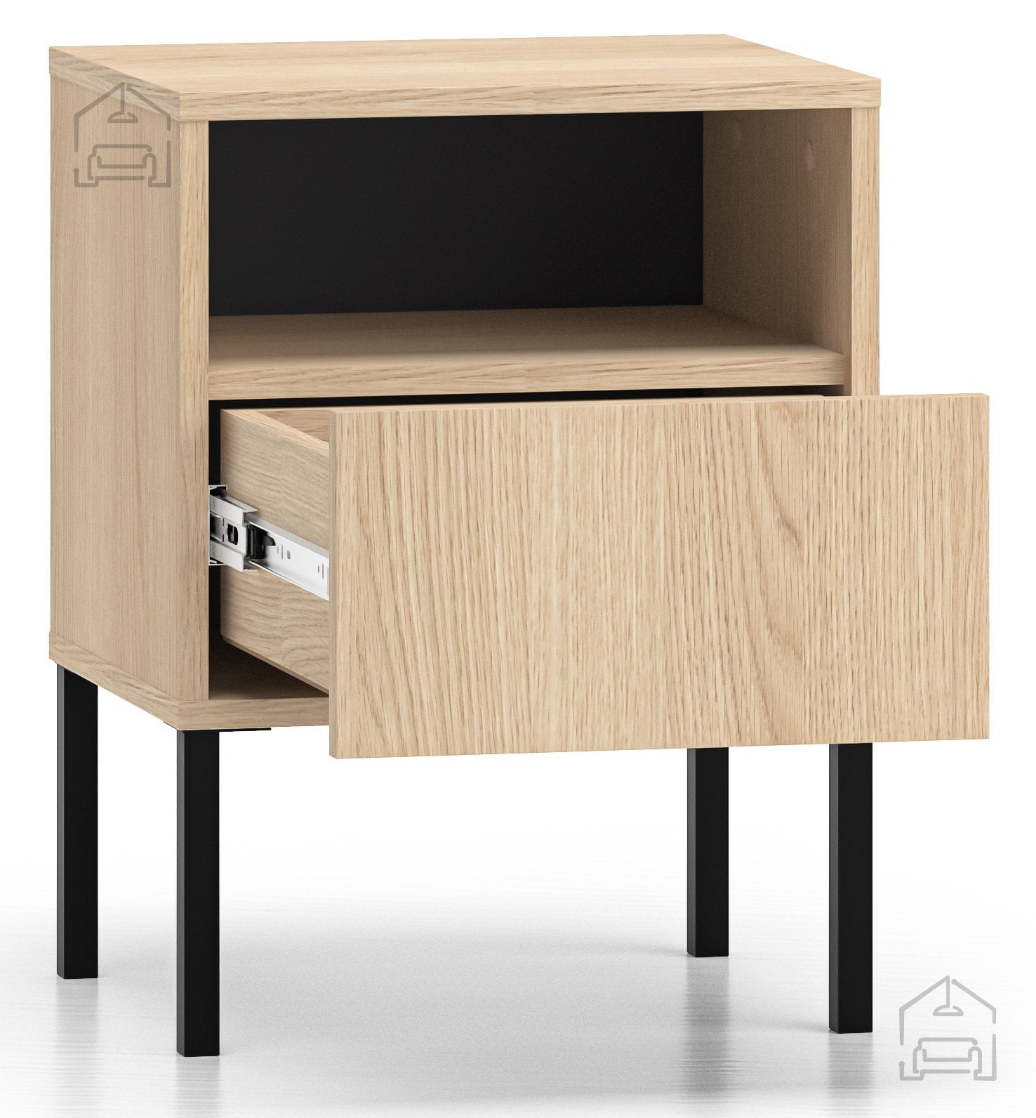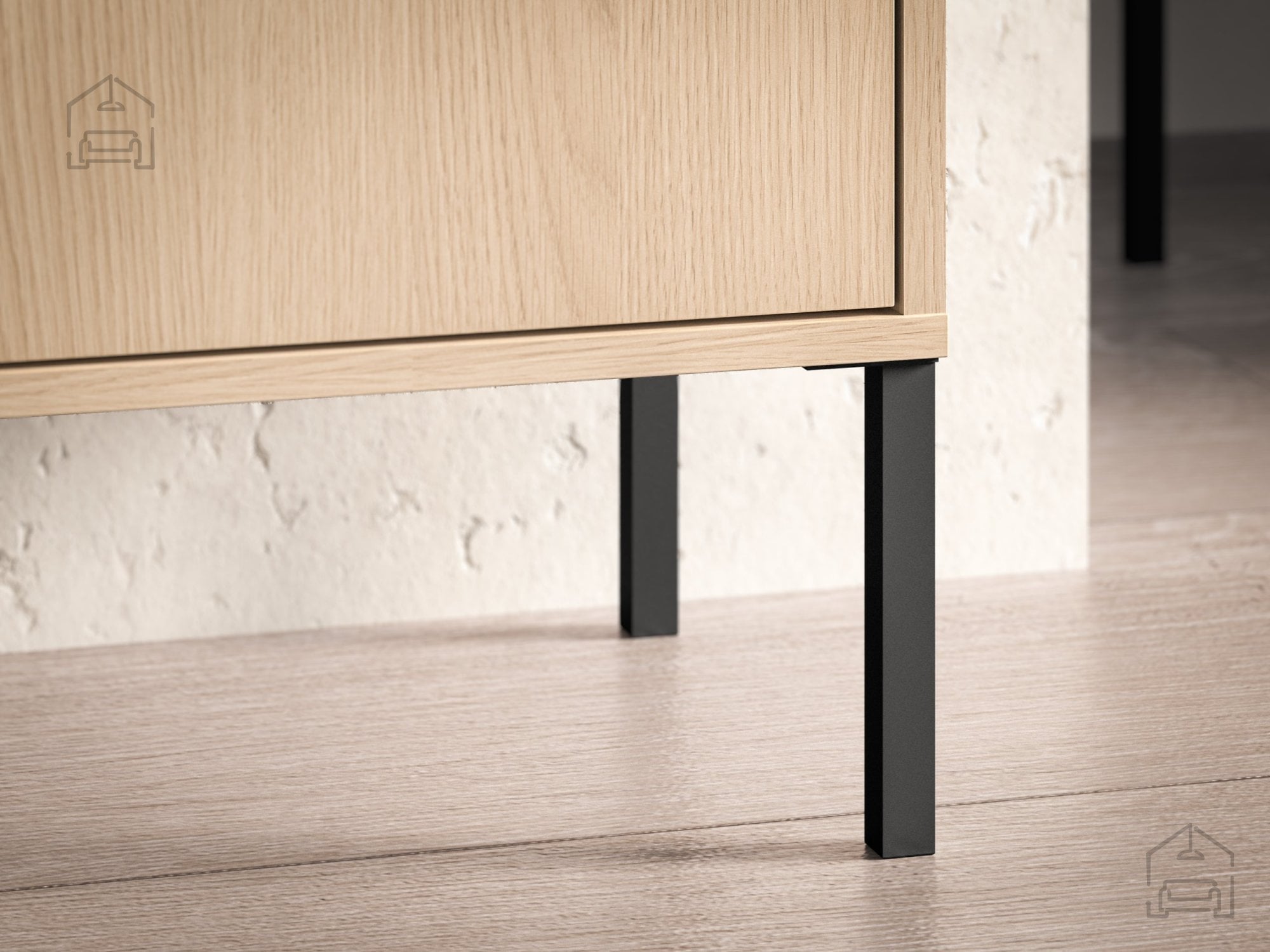 Ena izmed najbolj prepoznavnih značilnosti nočne omarice Barnee 05 so visoke kovinske noge. Dvignjena konstrukcija omogoča enostavno čiščenje tal pod omarico in daje videz zračnosti ter lahkotnosti. Takšna zasnova je hkrati estetska in praktična, saj omogoča tudi uporabo robotskega sesalnika. Kovinske noge so stabilne in zagotavljajo trdno oporo, kar podaljšuje življenjsko dobo pohištva.