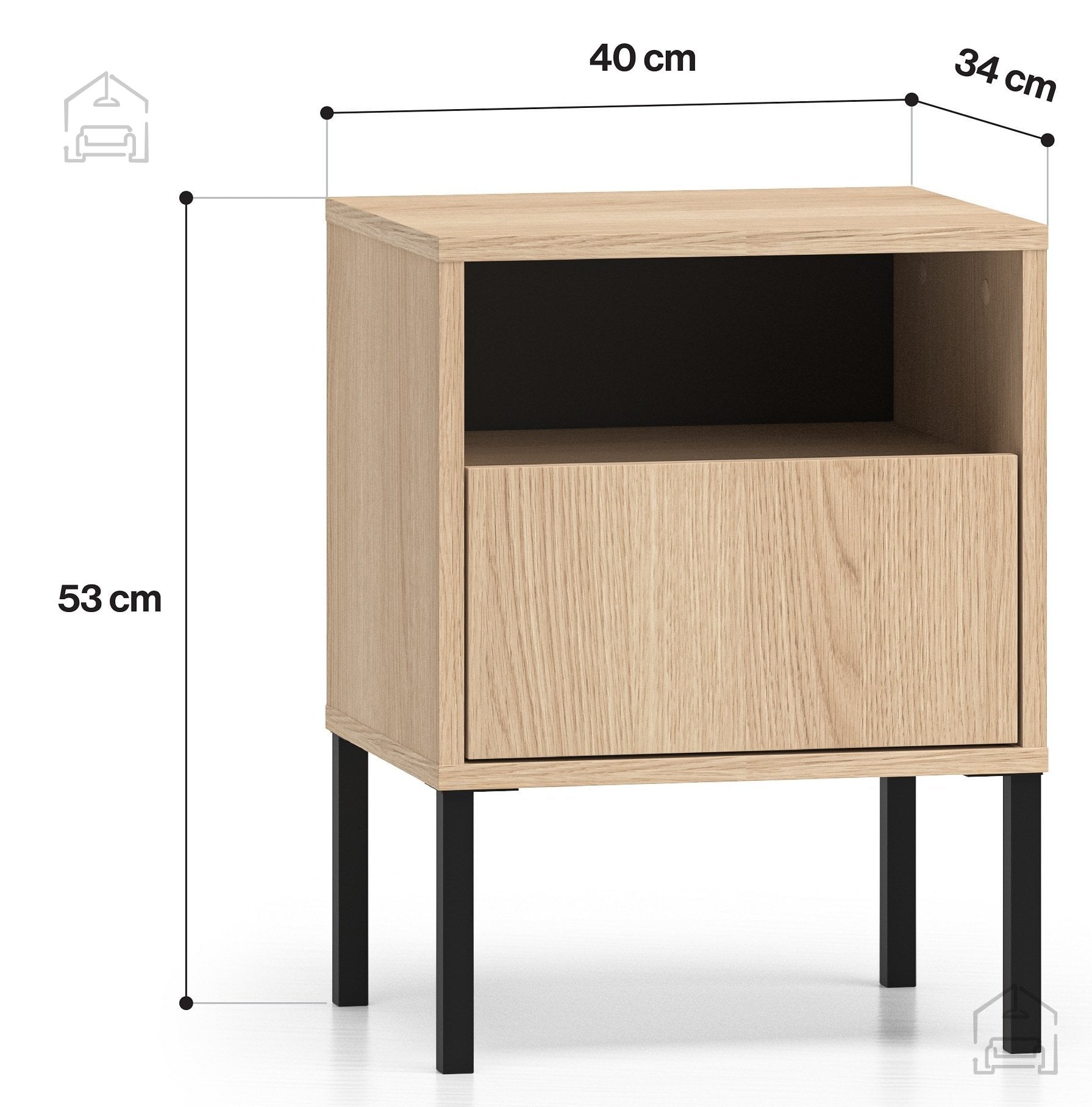 Če iščete nočno omarico, ki združuje lepoto naravnega videza lesa z robustnostjo kovinskih elementov, je Barnee 05 – ML Meble odlična izbira. Njen oblikovni minimalizem in praktična zasnova omogočata, da bo v vaši spalnici delovala urejeno, sodobno in prijetno. Zaradi kakovostnih materialov in premišljenih detajlov bo ostala funkcionalen in estetsko privlačen kos pohištva še vrsto let.