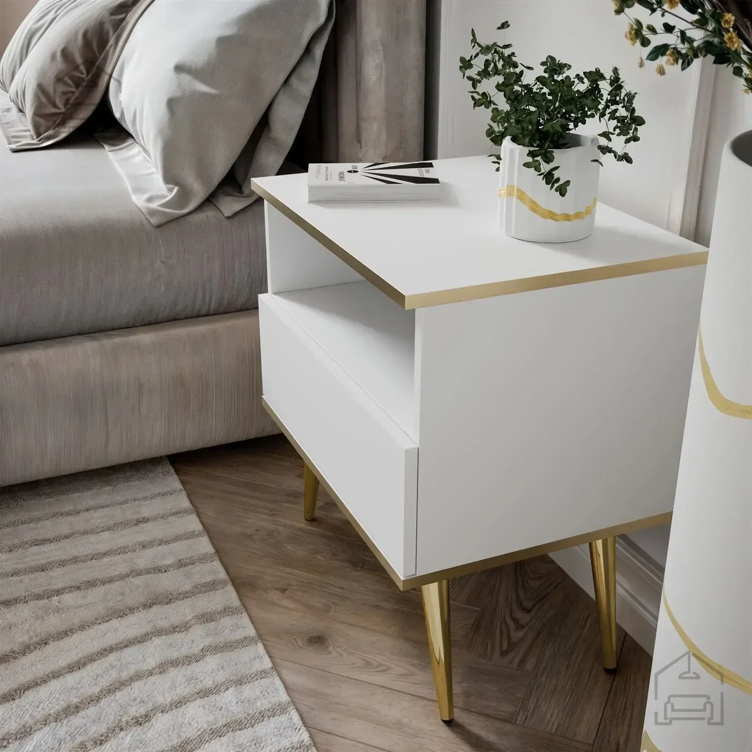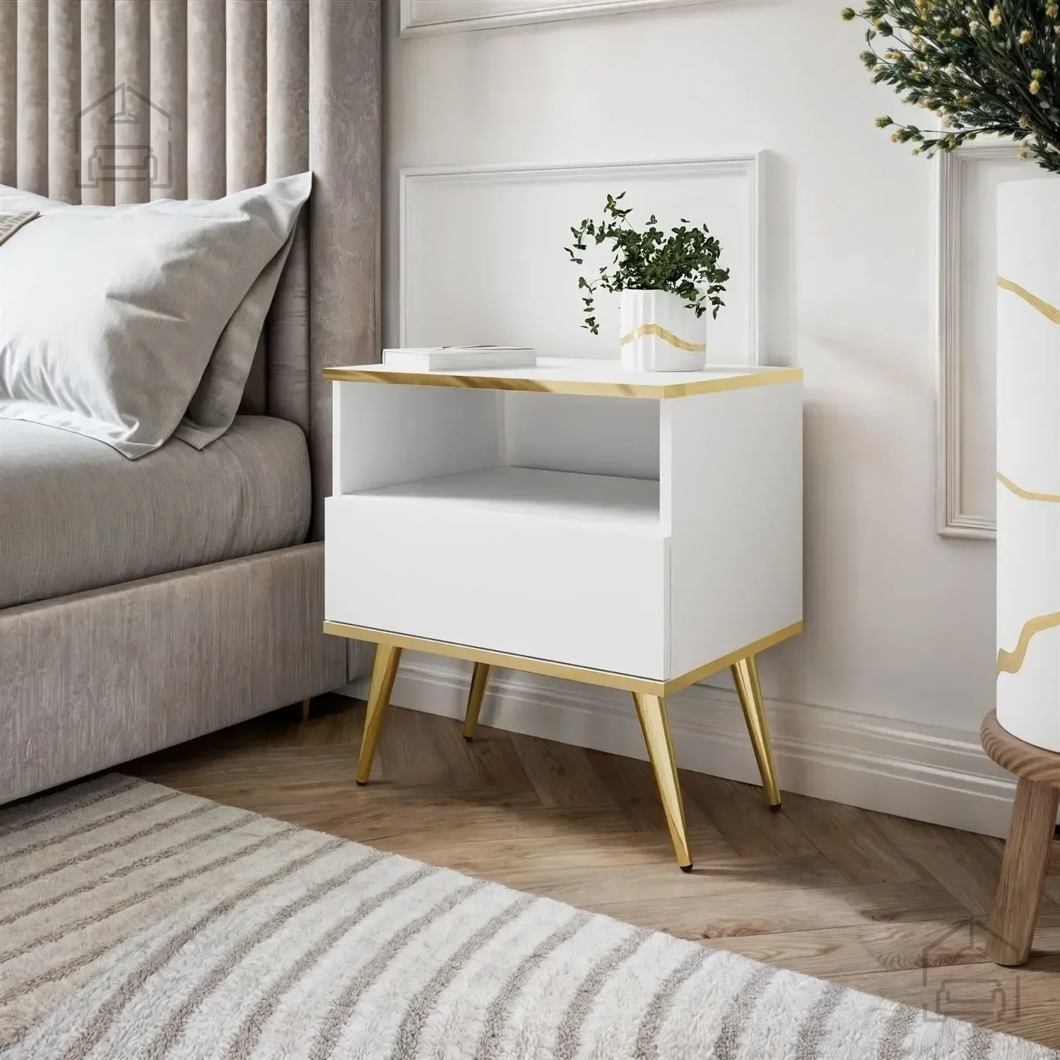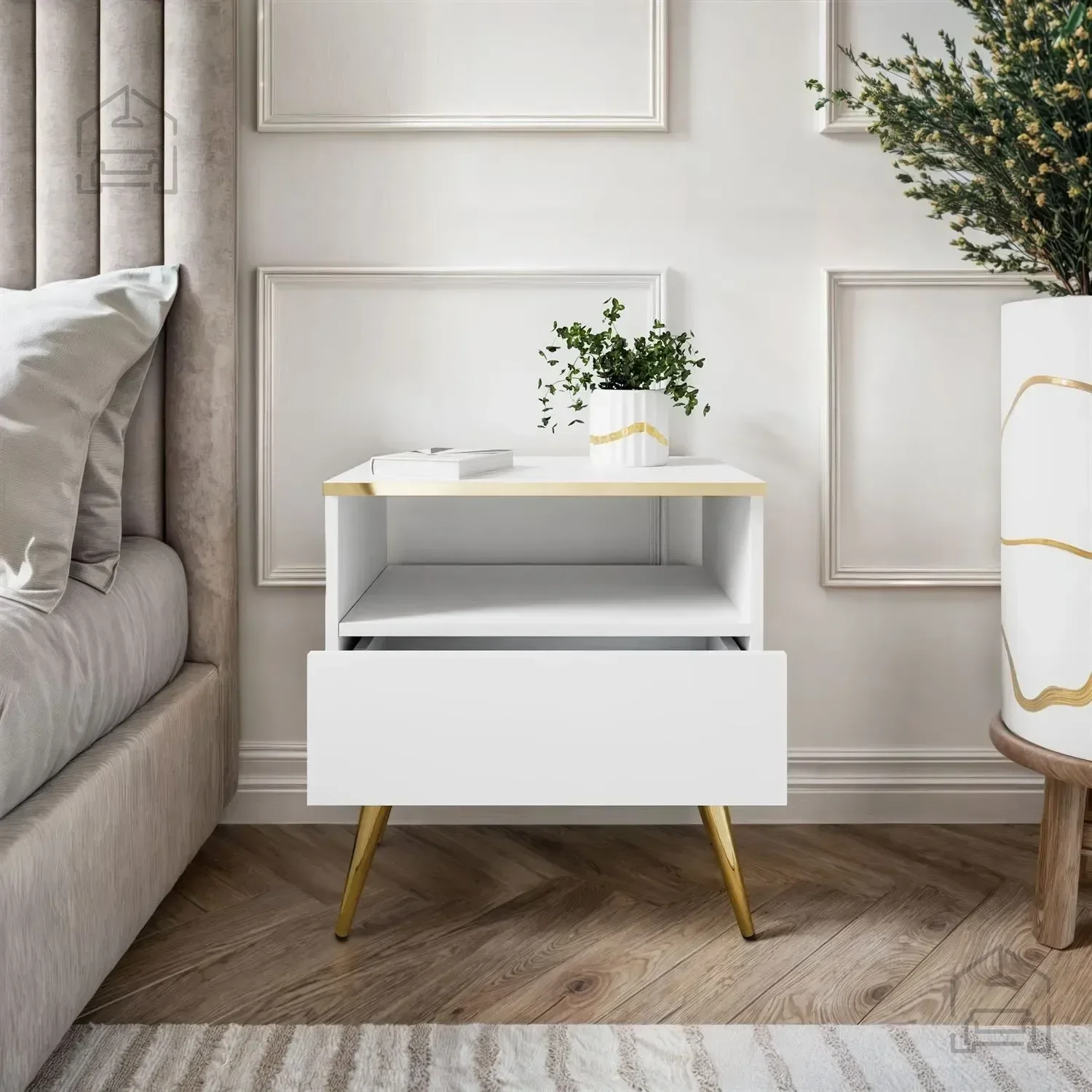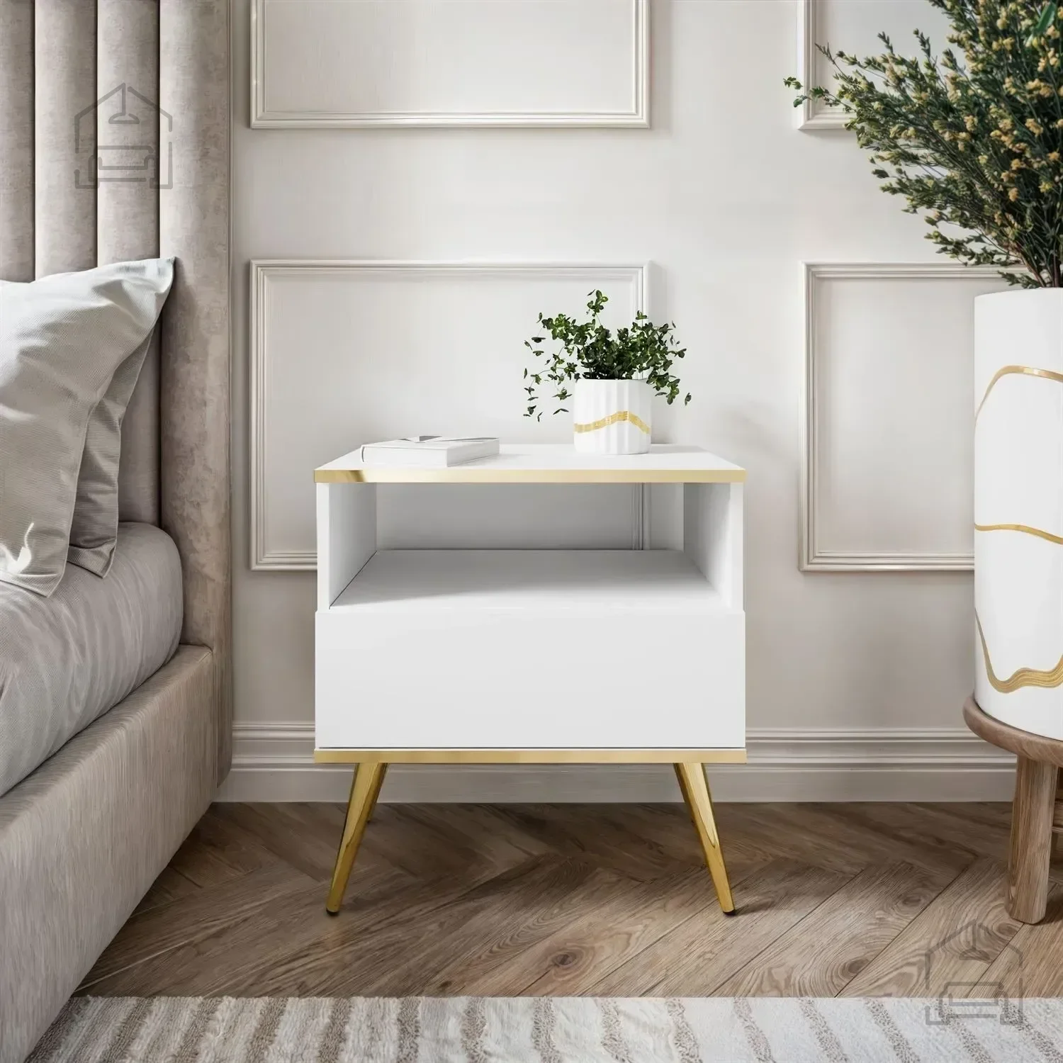 Odkrijte brezčasno eleganco in funkcionalnost z našo čudovito nočno omarico Oro v beli barvi, ki bo vaši spalnici dodala pridih prefinjenosti. Izdelana iz visokokakovostnega MDF materiala, ta omarica združuje stil in praktičnost, kar jo naredi popolno izbiro za vsako moderno spalnico.