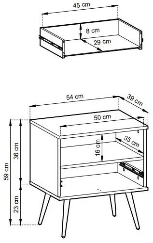 V notranjosti omarice boste našli dovolj prostora za shranjevanje knjig, osebnih predmetov ali drugih potrebščin, ki jih želite imeti pri roki ob koncu dneva. Njena praktična zasnova omogoča, da ohranite svojo spalnico urejeno in organizirano.