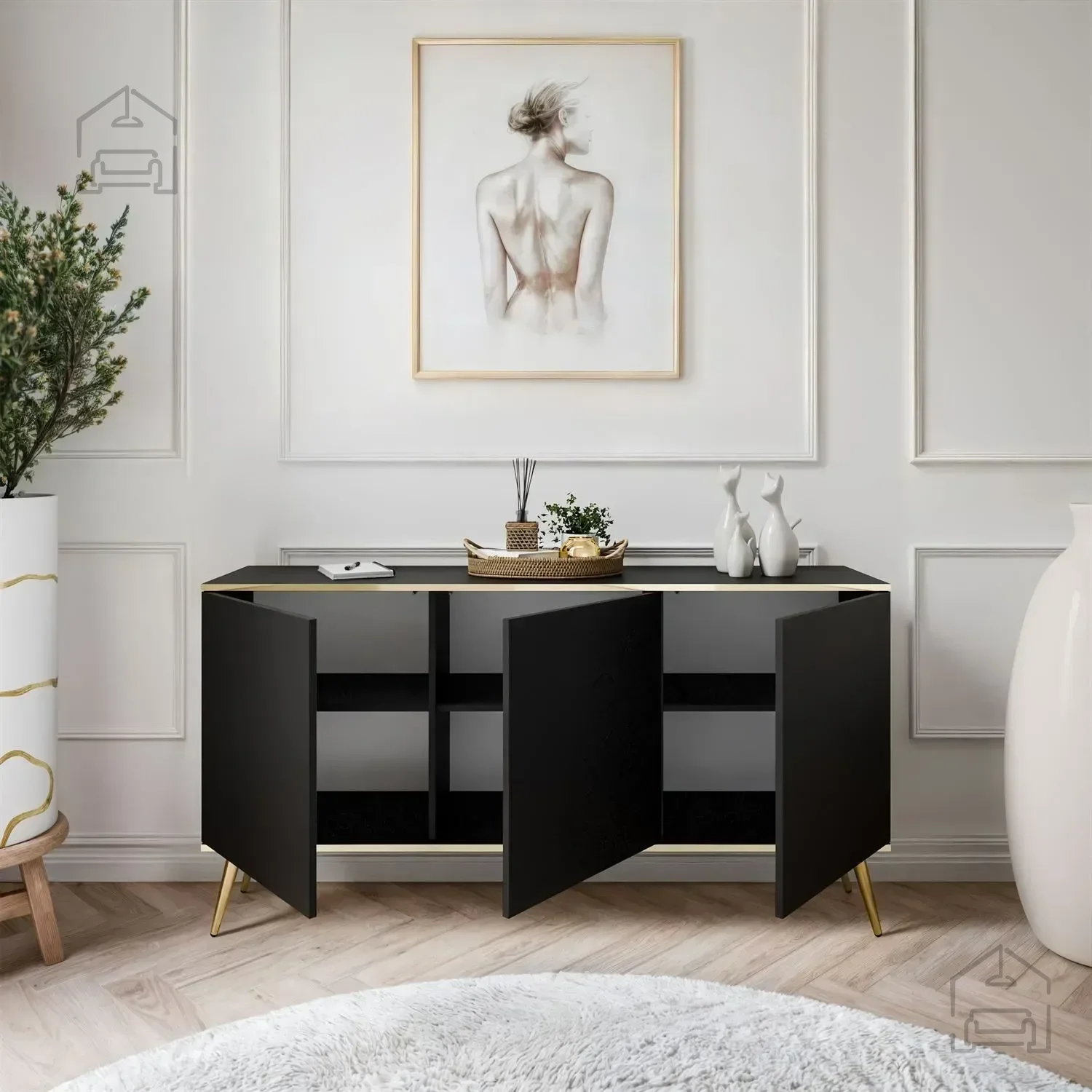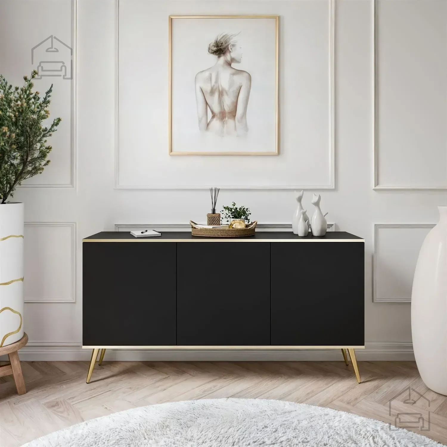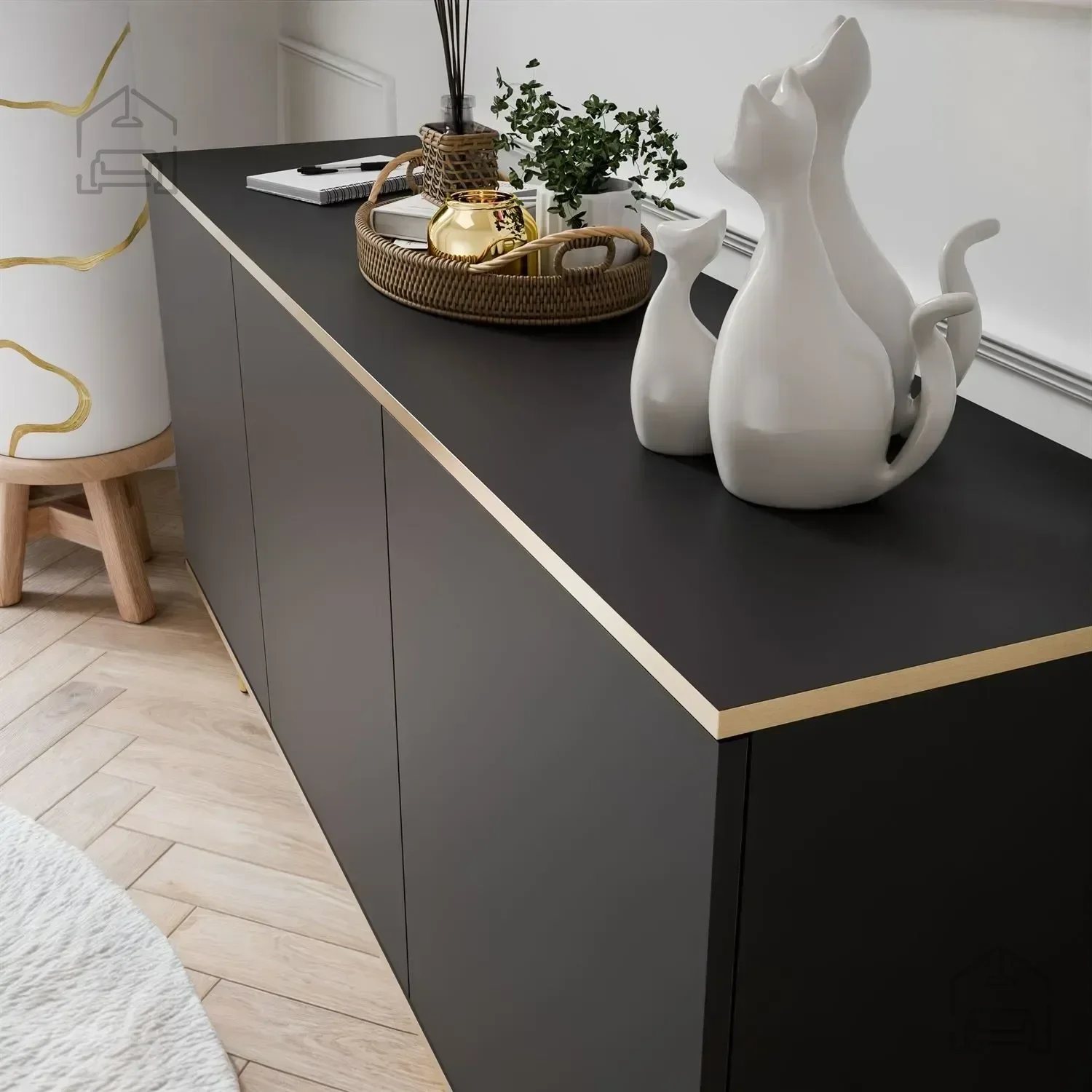 Komoda Oro K160 ni le funkcionalna, temveč tudi vizualno privlačna. S svojo gladko črno površino in brezčasnim dizajnom bo pritegnila poglede in dodala pridih elegance vsakemu prostoru. Ne glede na to, ali jo postavite v dnevno sobo, spalnico ali hodnik, bo služila kot osrednji dekorativni element.
