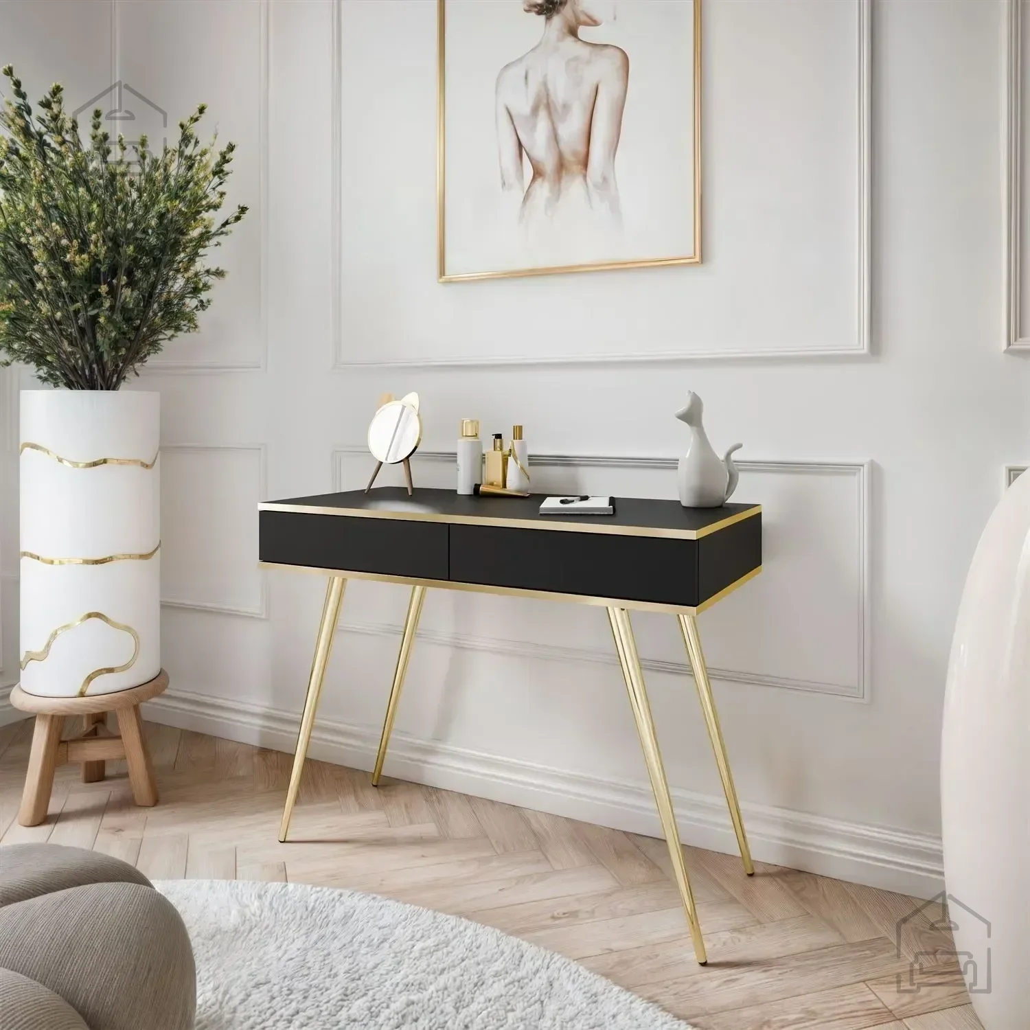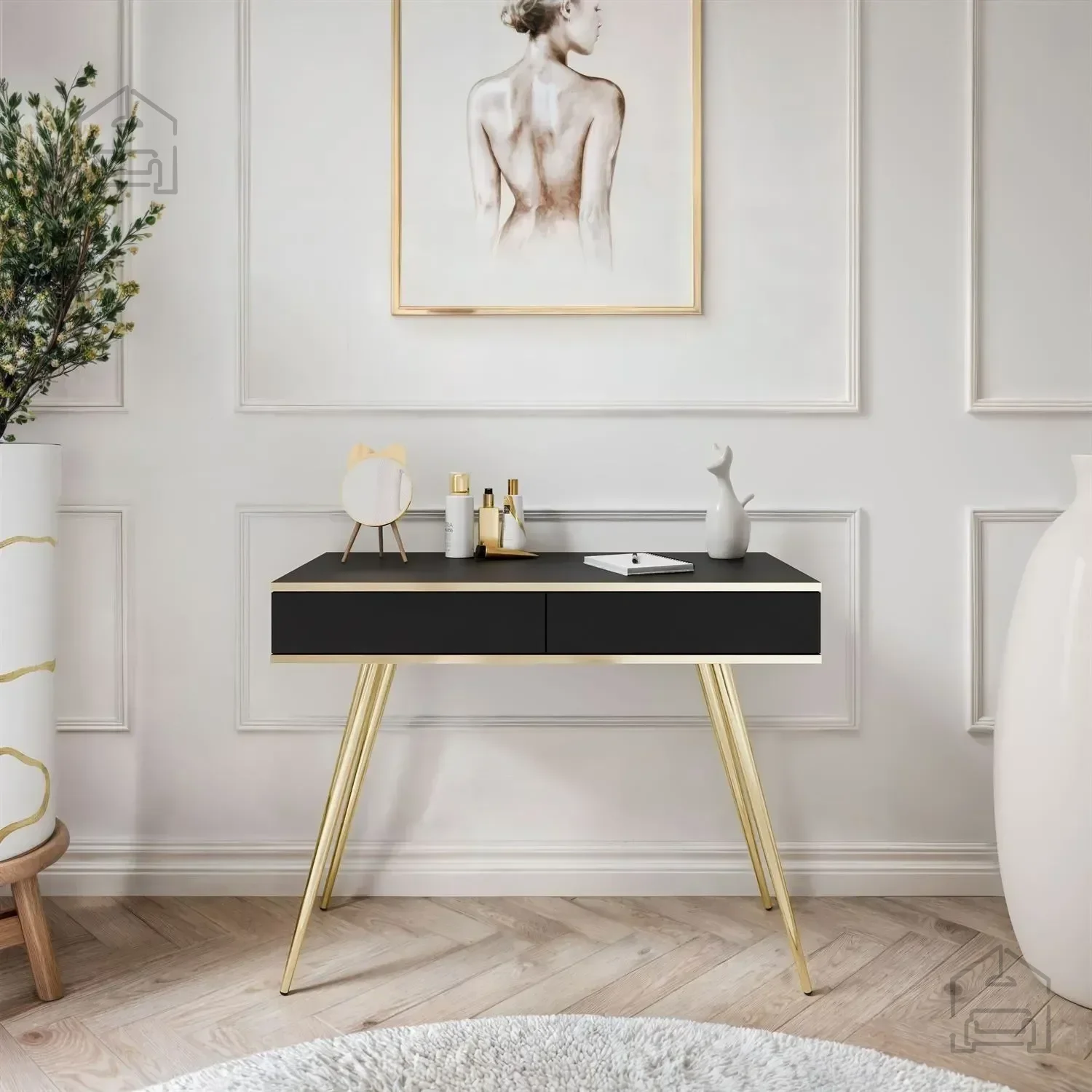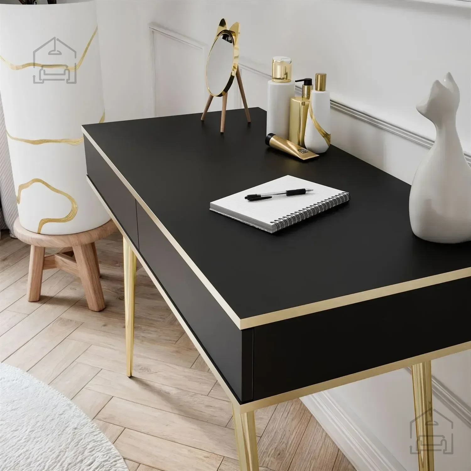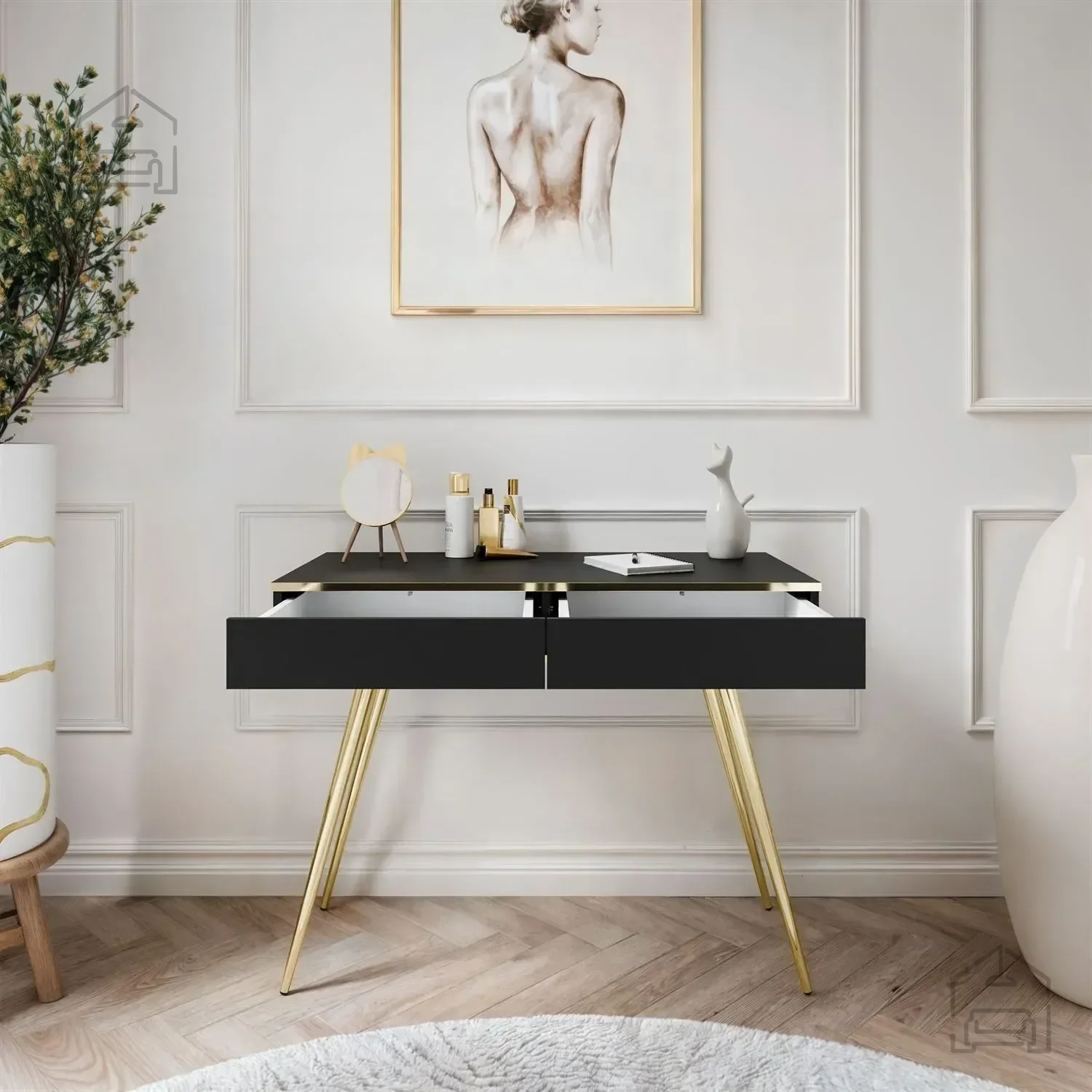Odkrijte čarobnost in funkcionalnost mize za ličenje Oro, ki s svojo elegantno črno barvo in vrhunskim dizajnom izpolnjuje vse vaše potrebe. Izdelana iz kakovostnega MDF materiala, ta miza združuje trpežnost in estetski videz, kar jo dela popolno izbiro za vsak sodoben dom.