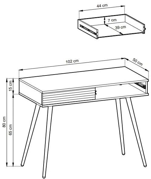 S svojimi dimenzijami 80x50x102 cm, miza za ličenje Oro zagotavlja dovolj prostora za vse vaše lepotne pripomočke in dodatke. Njena premišljena zasnova vključuje prostorne predale, ki omogočajo organizirano shranjevanje vaših ličil, parfumov in drugih osebnih predmetov. Tako boste vedno imeli vse pri roki, ko se pripravljate na dan ali večer.
