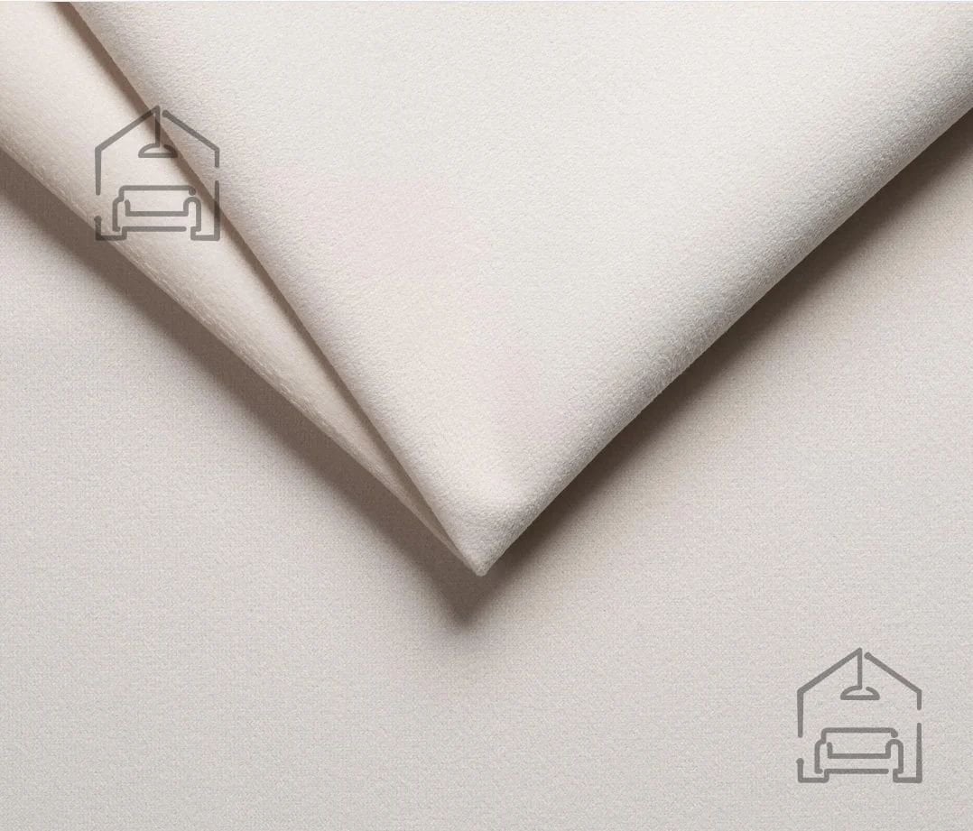 Postelja je tapecirana v tkanini, ki jo je mogoče izbrati v več barvnih odtenkih. Na fotografiji je prikazana tkanina Trinity 01, nežno strukturirana in prijetna na dotik. Kombinacija tkanine in masivnega lesa v konstrukciji zagotavlja stabilnost in dolgo življenjsko dobo. V notranjosti so uporabljeni materiali z visokim koeficientom stisljivosti in elastičnosti, kot so različne vrste poliuretanskih pen, sintepon in viscolateks. Ti materiali poskrbijo, da se ležišče ne poseda in da postelja tudi po letih uporabe ohrani svojo obliko.