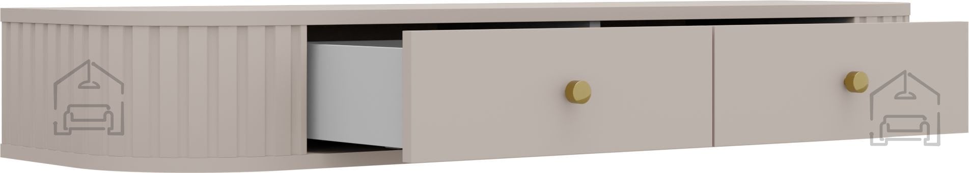 Peščeno bež barva konzole Ovalio deluje toplo in nevtralno, zato se harmonično povezuje z različnimi materiali in barvnimi shemami v prostoru. Ta odtenek omogoča, da pohištvo ne prevlada, temveč dopolnjuje ostale elemente notranje opreme. Uporabniki jo pogosto kombinirajo z lesenimi toni, belimi stenami ali kovinskimi dodatki, s čimer ustvarijo uravnotežen in prijeten ambient.