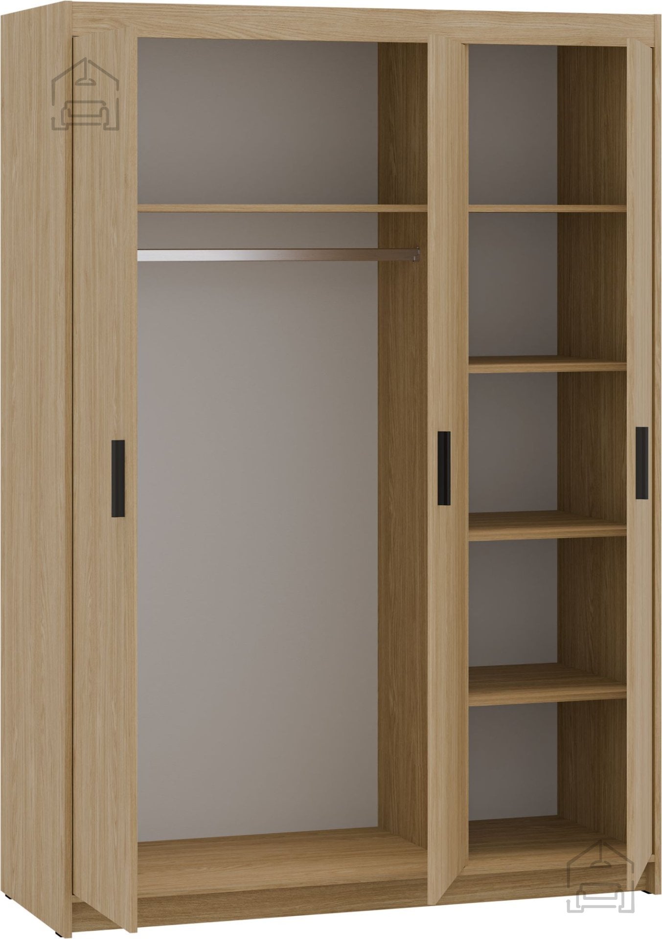Topla oljen hrast barva ustvarja prijetno, naravno atmosfero v prostoru. Takšen odtenek je idealen za svetlejše interierje, saj dodaja mehkobo in vizualno poveča prostor. Bež barva se lepo ujema z belimi, sivimi ali lesenimi toni, zato jo je mogoče enostavno kombinirati z drugimi kosi pohištva, kot so postelje, komode ali nočne omarice. Površina omare je gladka, z nežnim mat učinkom, ki daje vtis prefinjenosti, hkrati pa ostaja praktična za vsakodnevno uporabo.
