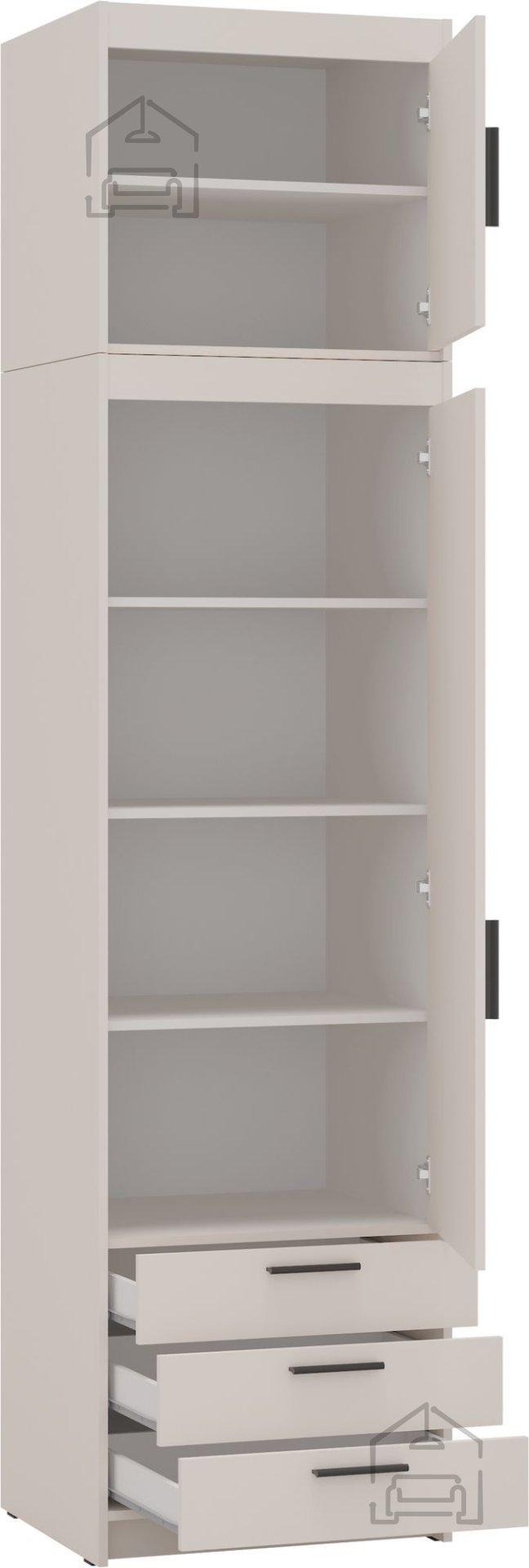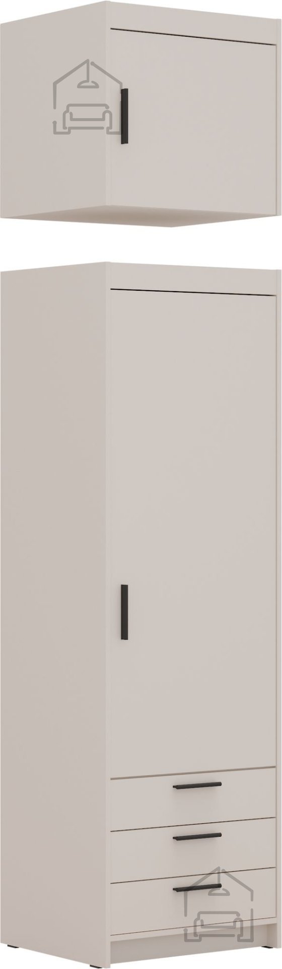Odtenek peščeno bež prinaša občutek topline in umirjenosti. Ta barva se lepo povezuje z naravnimi materiali, kot sta les ali kamen, pa tudi z modernimi barvnimi poudarki, kot so siva, bela ali antracit. Omara Elena NAEL BP01 se lahko uporabi kot samostojen element ali kot del širše linije pohištva iz iste kolekcije, kar omogoča enoten vizualni vtis v prostoru. Bež ton prispeva k svetlemu in prostornemu občutku v prostoru, zato je izdelek odlična izbira za manjše kuhinje ali odprte dnevne prostore.