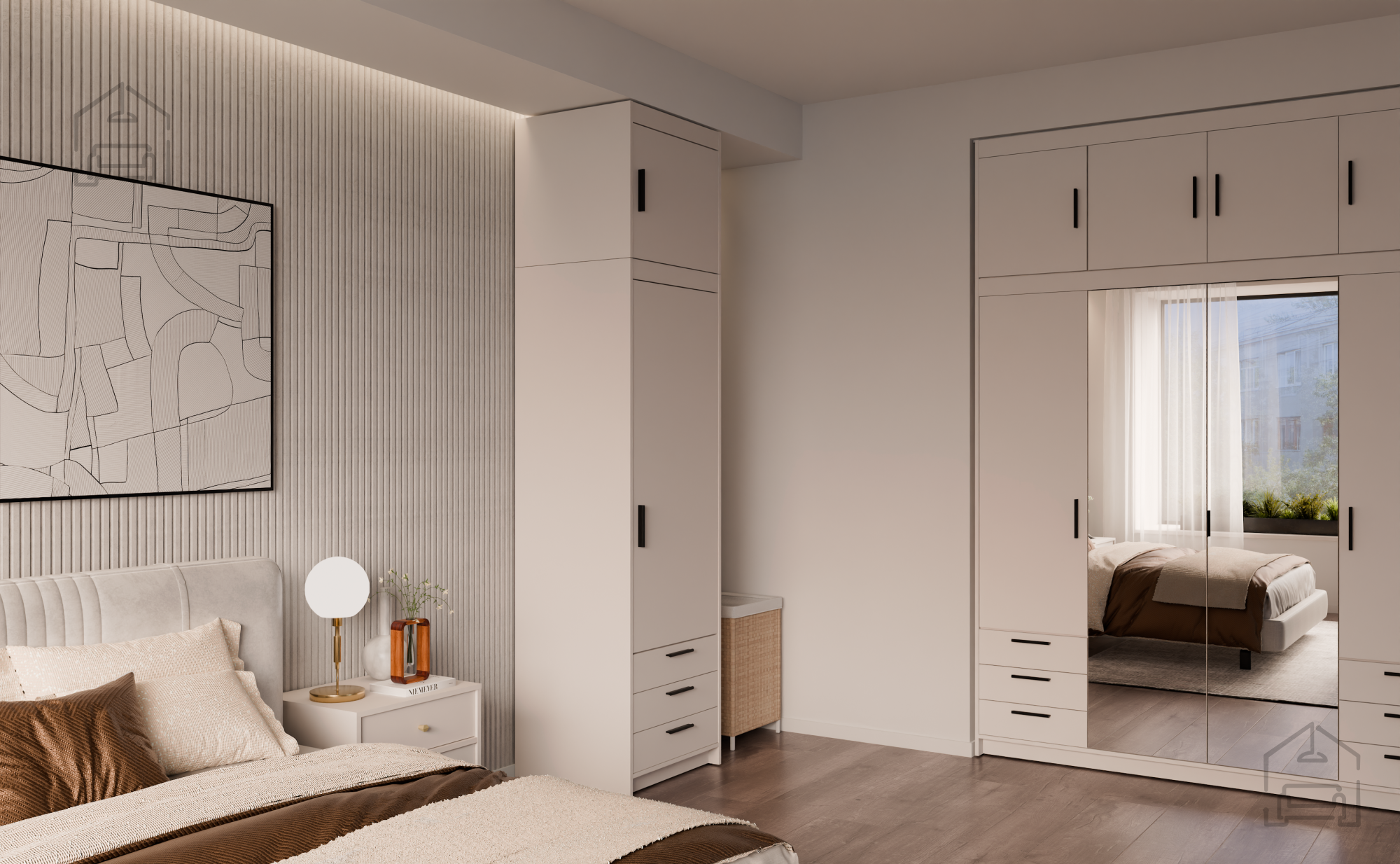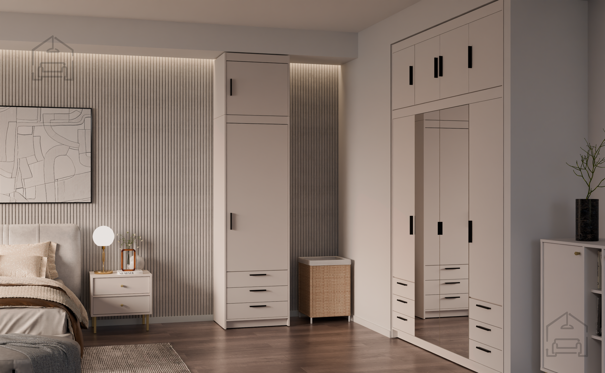 Uporabljena laminirana plošča debeline 15 mm ima gladko površino, ki je odporna na vsakodnevne obremenitve in enostavna za čiščenje. Laminat varuje osnovni material pred vlago, prahom in mehanskimi poškodbami, zato omara dolgo ohrani svoj prvotni videz. Robovi so natančno obdelani, spoji poravnani, kar dodatno poudari kakovost izdelave. Zaradi teh lastnosti je kos primeren tako za domačo kot profesionalno uporabo – na primer v apartmajih, pisarnah ali počitniških objektih.