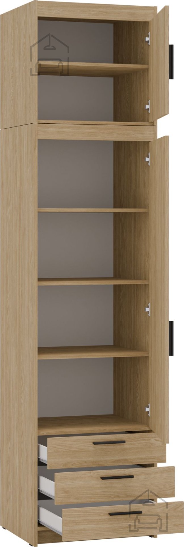 Zgornja omara Elena je idealna izbira za tiste, ki iščejo ravnovesje med estetiko, kakovostjo in funkcionalnostjo. Ponuja klasičen, a sodoben videz, ki se bo brez težav vključil v različne tipe interierjev. Njena robustna konstrukcija in premišljene dimenzije omogočajo praktično uporabo vsak dan, medtem ko naravni ton oljenega hrasta ustvarja prijeten občutek topline doma.