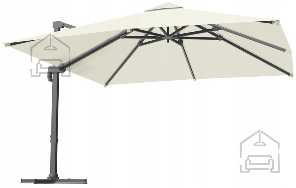 Dežnik iz visokokakovostnih materialov. Ima vodoodporen material, zaradi česar je 100% odporen na vremenske razmere. Zlaganje in razpiranje je enostavno zahvaljujoč ročici. Za razliko od konkurence ima naš dežnik veliko in trdno stojalo iz prašno lakiranega jekla! Njegovo stabilnost zagotavljajo posebne luknje na okvirju ali posebne uteži (kupite jih posebej), namenjene pritrditvi dežnika na tla, zaradi česar je manjša verjetnost, da se bo prevrnil!