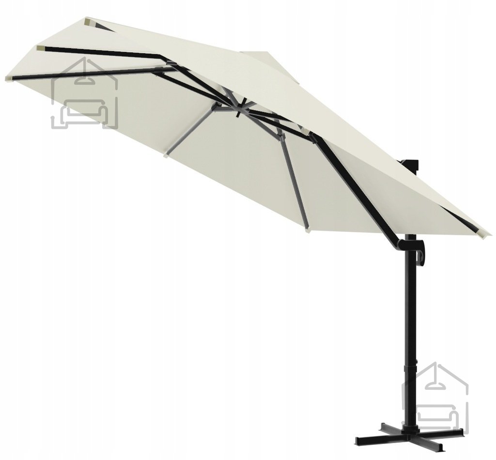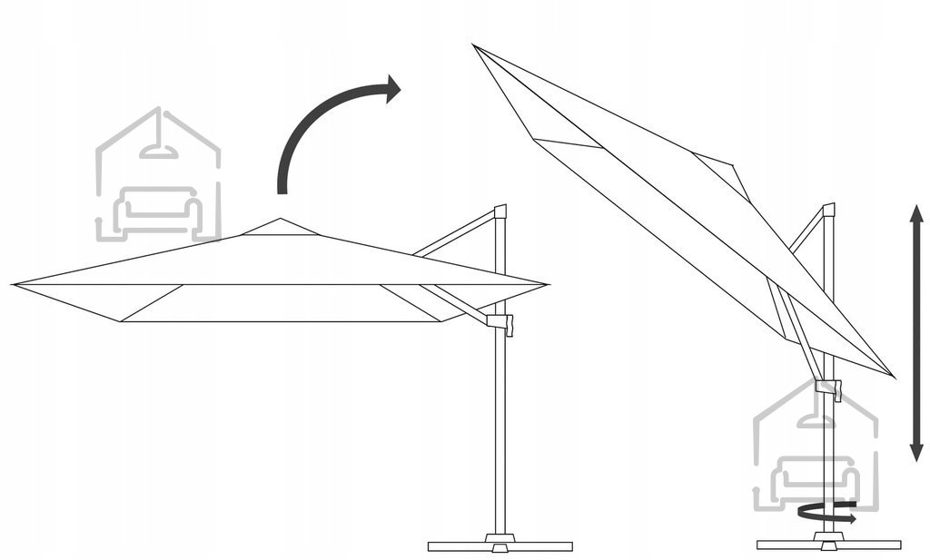 Dežnik ima nastavitev naklona in vrtenja. To omogoča zaščito pred sončno svetlobo ne glede na vpadni kot.