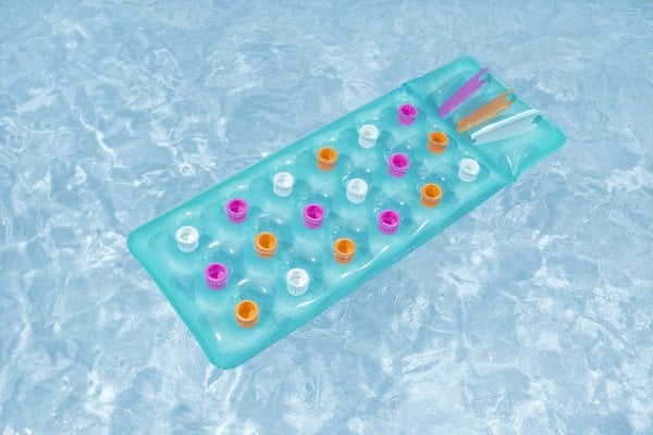 Napihljiva vzmetnica Chomik prepriča s svojo preprosto, a učinkovito konstrukcijo. Površina ima večbarvne žepe, ki dodajo živahen estetski pridih, hkrati pa omogočajo lažje zaznavanje blazine na vodi. Ti barvni elementi niso le vizualni dodatek, ampak tudi praktična rešitev, saj izboljšajo vidnost in varnost. Izdelek je na voljo v dveh barvnih različicah, tako da lahko izberete tisto, ki vam najbolj ustreza.