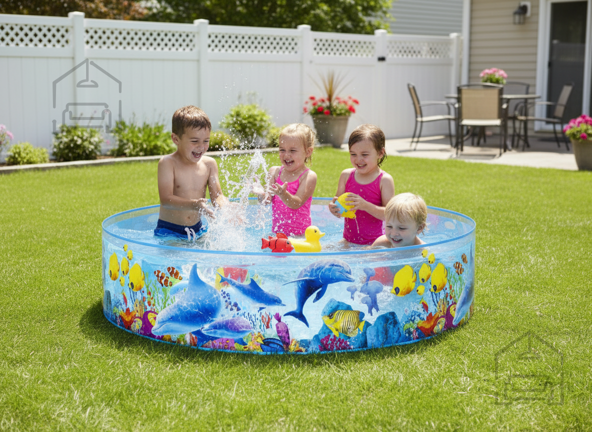 Bazen spodbuja otroke k aktivni igri na prostem in omogoča prijetno ohladitev v vročih poletnih dneh. Zaradi svoje velikosti je dovolj prostoren, da se lahko v njem hkrati igra več otrok – bodisi s starši ali prijatelji. Trdne stene iz PVC-ja ohranjajo obliko bazena, medtem ko nizka višina omogoča varno igro tudi mlajšim otrokom. Zunanjost bazena je barvita in prijetna na pogled, zato se lepo poda v vsak vrt ali dvorišče.