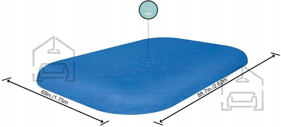 Če želite, da vaš napihljiv bazen ostane čist in pripravljen za uporabo vsak dan, potem je pokrov nepogrešljiv pripomoček. Njegove dimenzije 262x175x51 cm so popolnoma prilagojene pravokotnim napihljivim bazenom in zagotavljajo tesno prileganje. Tako se izognete nepotrebnim težavam z nepravilnim pokrivanjem ali nabiranjem vode na površini pokrova.