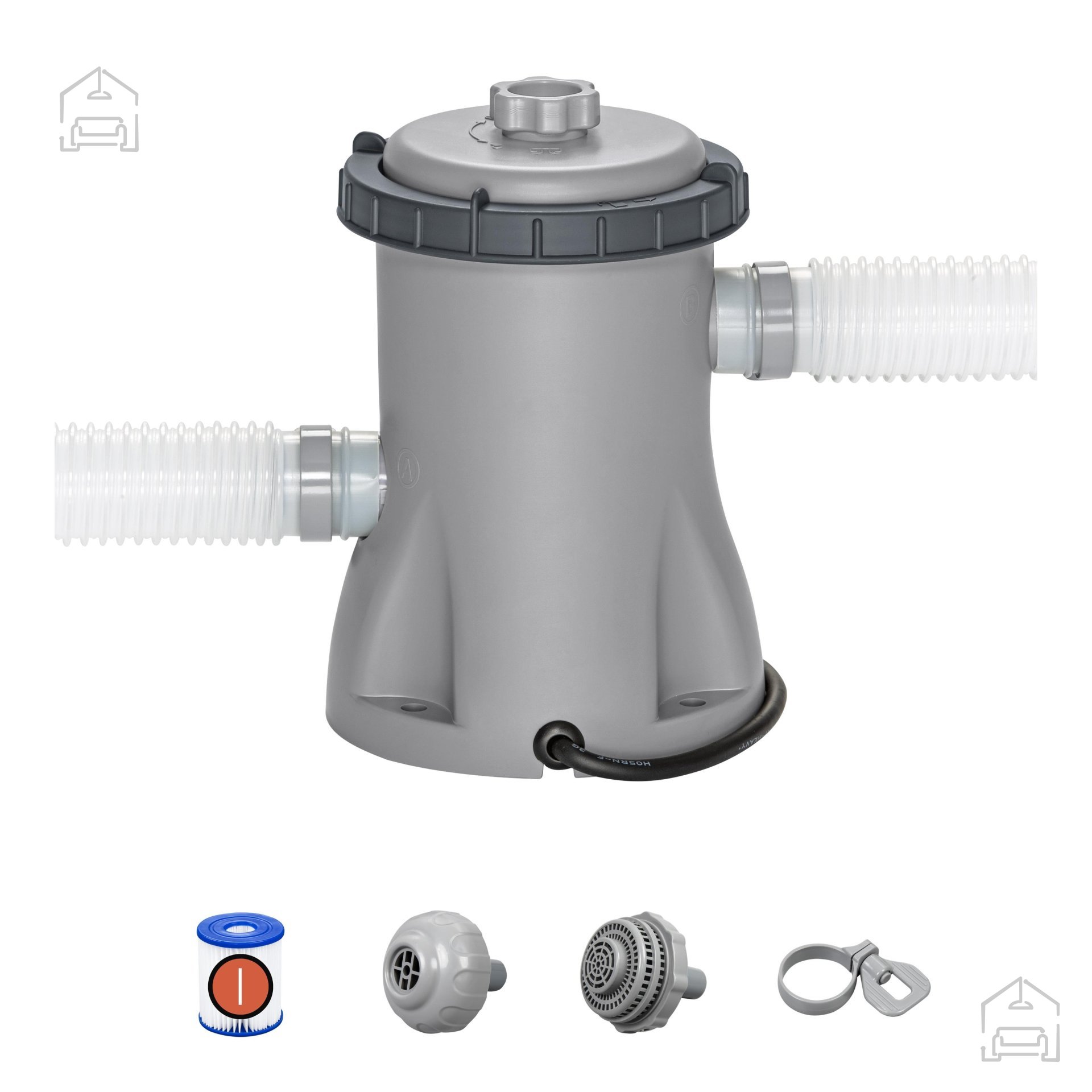 Delovanje črpalke temelji na sistemu filtriranja, ki s pomočjo priloženega filtra (model 58093) odstranjuje nečistoče, mikrodelce in mikroorganizme. Tako se zmanjša potreba po pogostem menjavanju vode, bazen pa ostane higieničen in prijeten za uporabo. Stalno kroženje vode preprečuje zastajanje in razvoj alg, kar pomeni manj vzdrževanja in več časa za sprostitev.