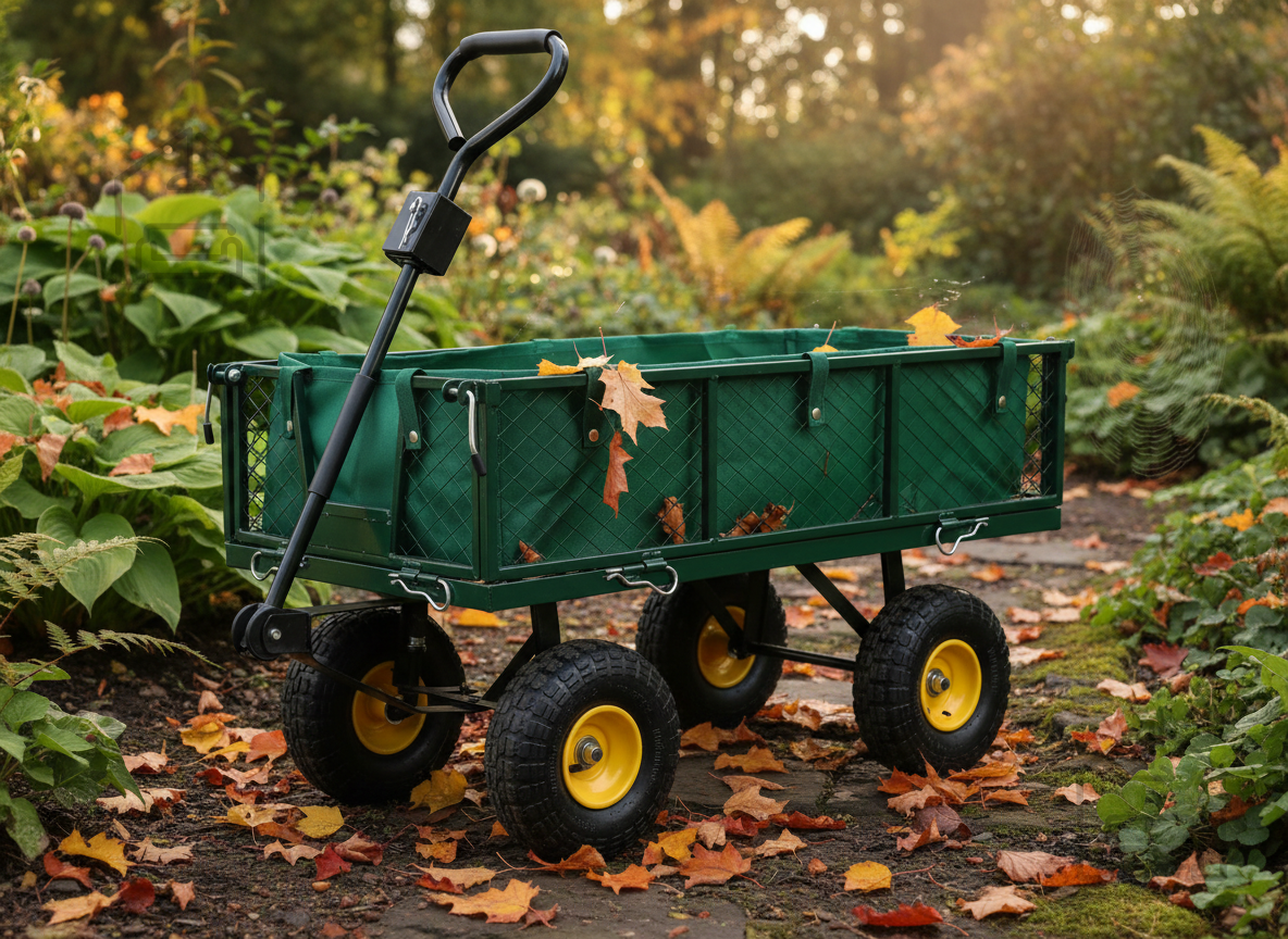 Vrtni voziček – zelen – WOZ6841 je zanesljiv pomočnik za vsak vrt, sadovnjak ali delavnico, kjer je potrebno prevažati težje predmete ali večjo količino materiala. Izdelan je iz trpežnih kovinskih in plastičnih delov, kar zagotavlja dolgo življenjsko dobo in odpornost proti vremenskim vplivom. Z nosilnostjo do 300 kg omogoča udobno in varno prevažanje zemlje, orodja, drv ali vrtnarskih pripomočkov. Zelena barva mu daje klasičen, a hkrati svež videz, primeren za vsako okolje na prostem.