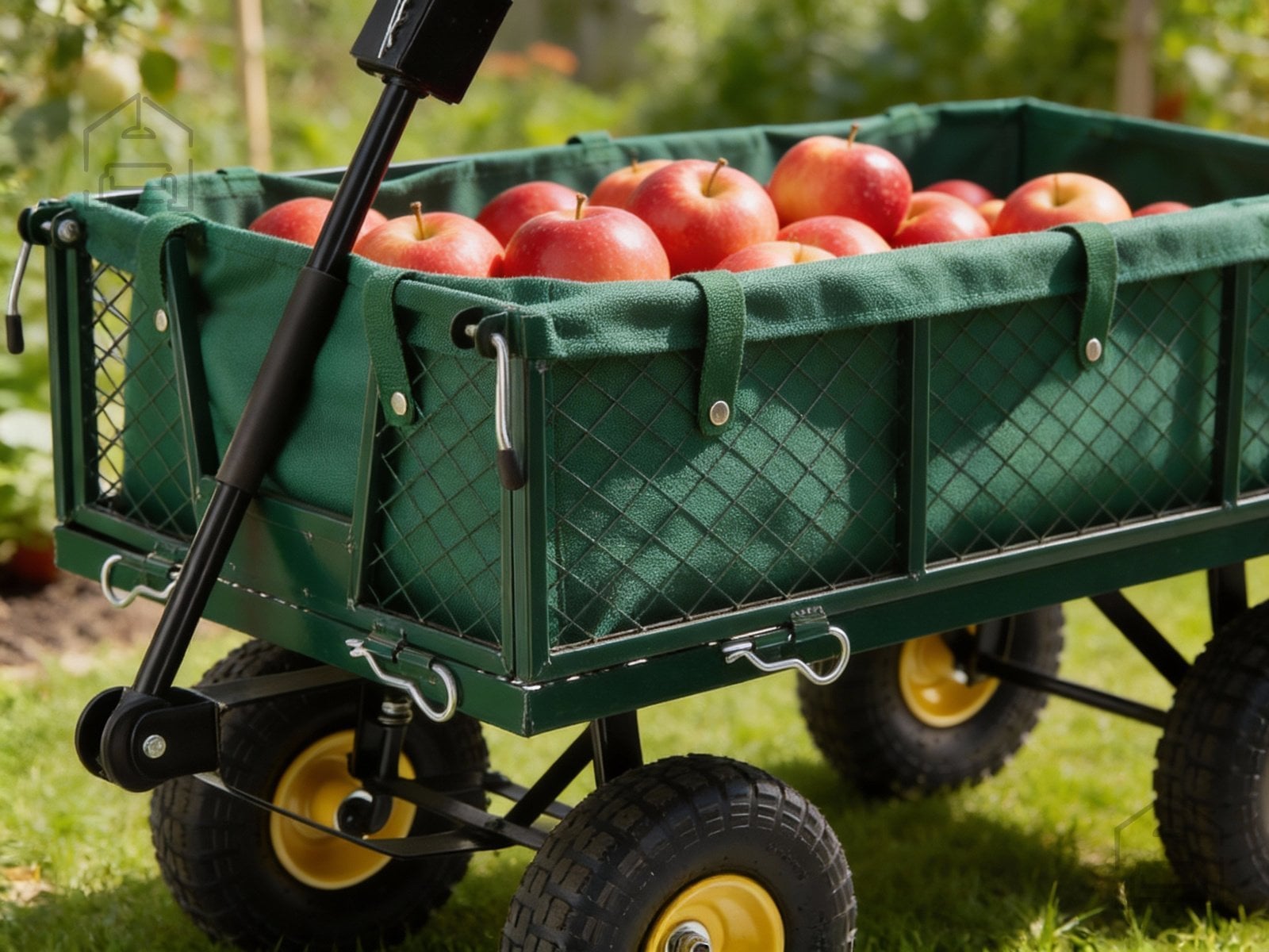 Ko vozička ne uporabljate, ga lahko enostavno razstavite in pospravite, saj zavzame malo prostora. Zaradi uporabljenih materialov ga je mogoče hitro očistiti z vodo in blagim detergentom. Zelena barva ohranja estetski videz in se lepo zlije z naravnim okoljem vrta.
