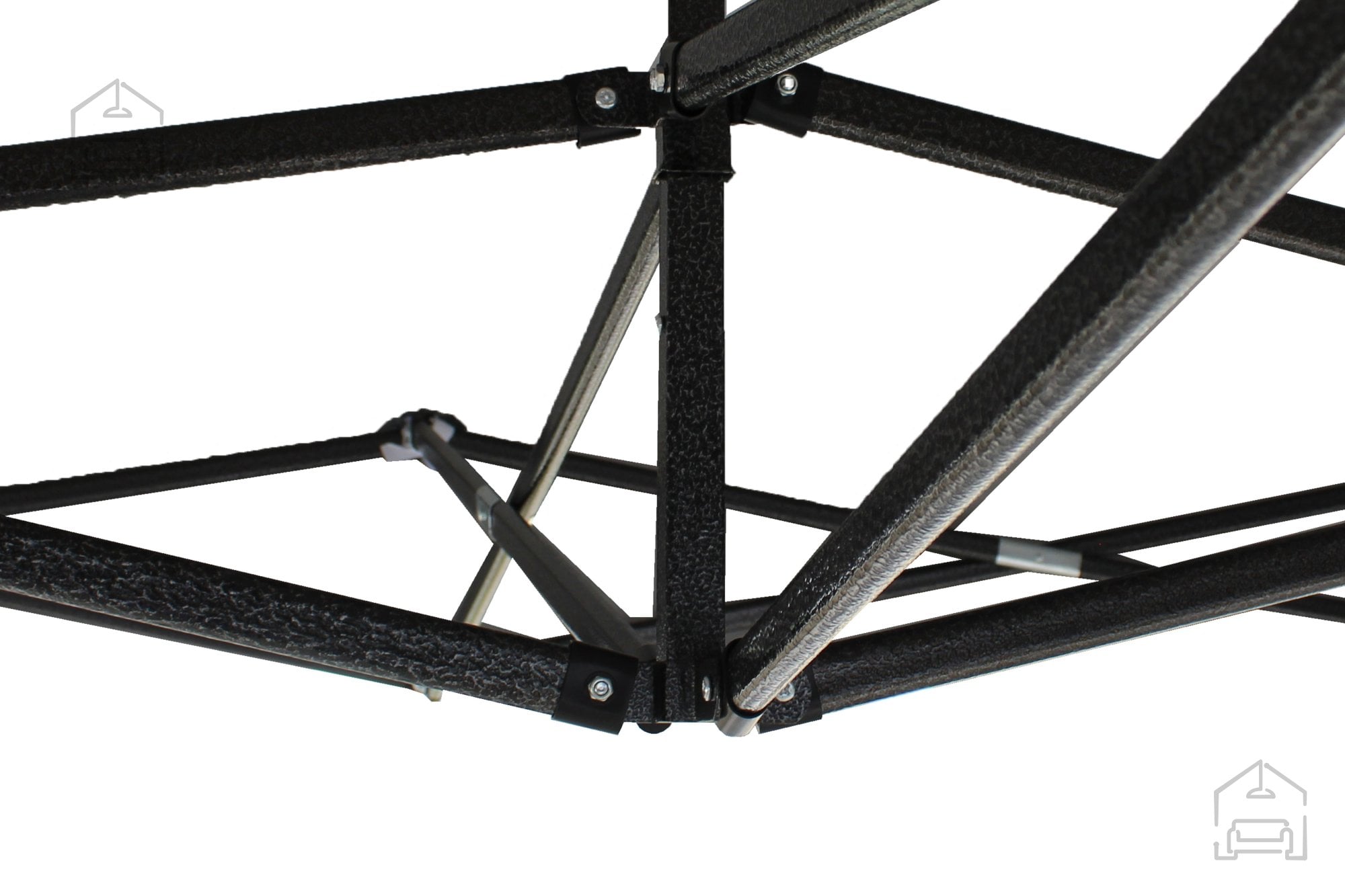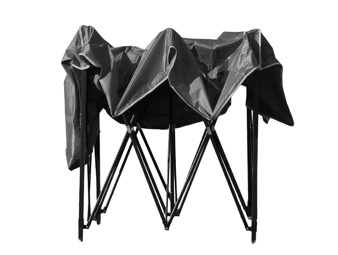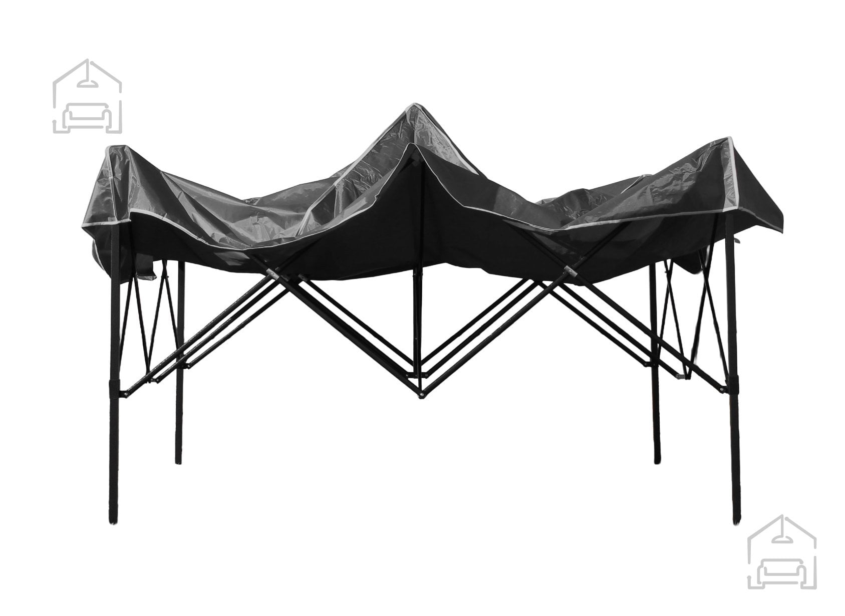 Ogrodje šotora je izdelano iz jekla, kar zagotavlja stabilnost tudi pri pogostem sestavljanju in razstavljanju. Cevi debeline 30x30x0,5 mm dajejo celotni konstrukciji potrebno trdnost, medtem ko prašno barvana površina varuje kovino pred korozijo. Streha iz materiala 420D PVC Oxford in stranice iz 210D PVC Oxford zagotavljajo 100 % vodoodpornost, kar omogoča brezskrbno uporabo v vseh vremenskih razmerah. Siva barva prispeva k elegantnemu videzu, ki se lepo poda različnim okoljem – od komercialnih dogodkov do zasebnih vrtnih zabav.
