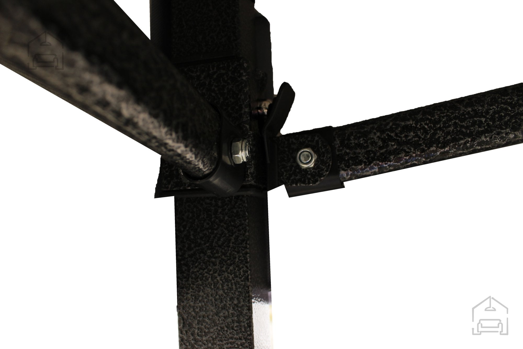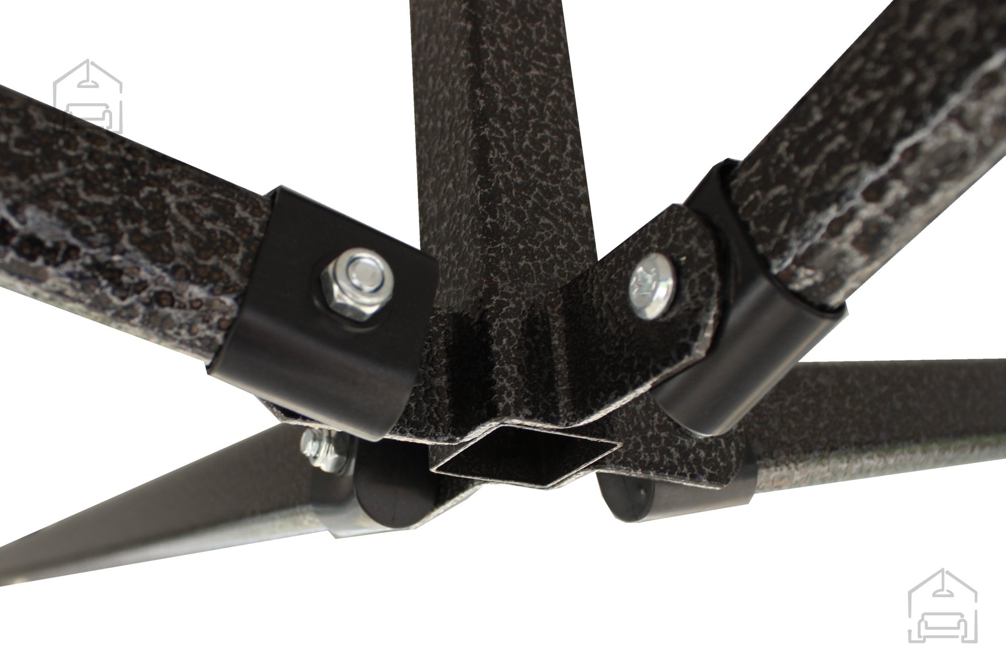 Šotor meri 300x300x316 cm in ponuja prostorno notranjost za udobno gibanje in postavitev opreme. Višina se lahko nastavlja v razponu od 283 do 310 cm, kar omogoča prilagoditev glede na potrebe prostora ali vremenske pogoje. Sistem zložljivih nog omogoča hitro sestavljanje in razstavljanje brez posebnega orodja. V kompletu je priložen tudi komplet za pritrditev na tla, s katerim lahko dodatno povečate stabilnost pri vetru.
