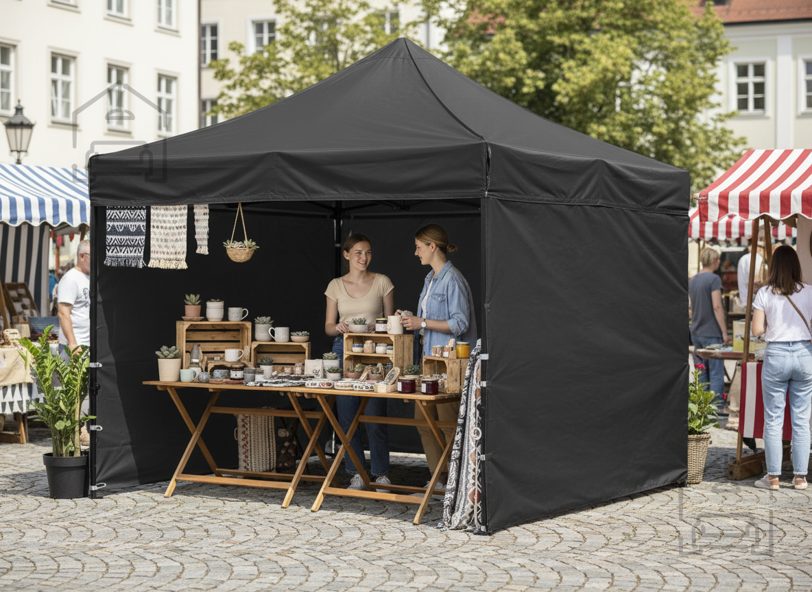 Šotor NAM9031 predstavlja zanesljivo rešitev za vse, ki iščejo trpežen in estetsko dovršen paviljon za uporabo v različnih okoljih – od sejmov in tržnic do vrtnih zabav in priložnostnih dogodkov na prostem. Izdelan je iz kakovostne kovine ter oblečen v sivo PVC tkanino, ki učinkovito ščiti pred soncem in dežjem. Zahvaljujoč premišljeni zasnovi in enostavnemu sistemu hitre postavitve je uporaba šotora preprosta, ne glede na priložnost.