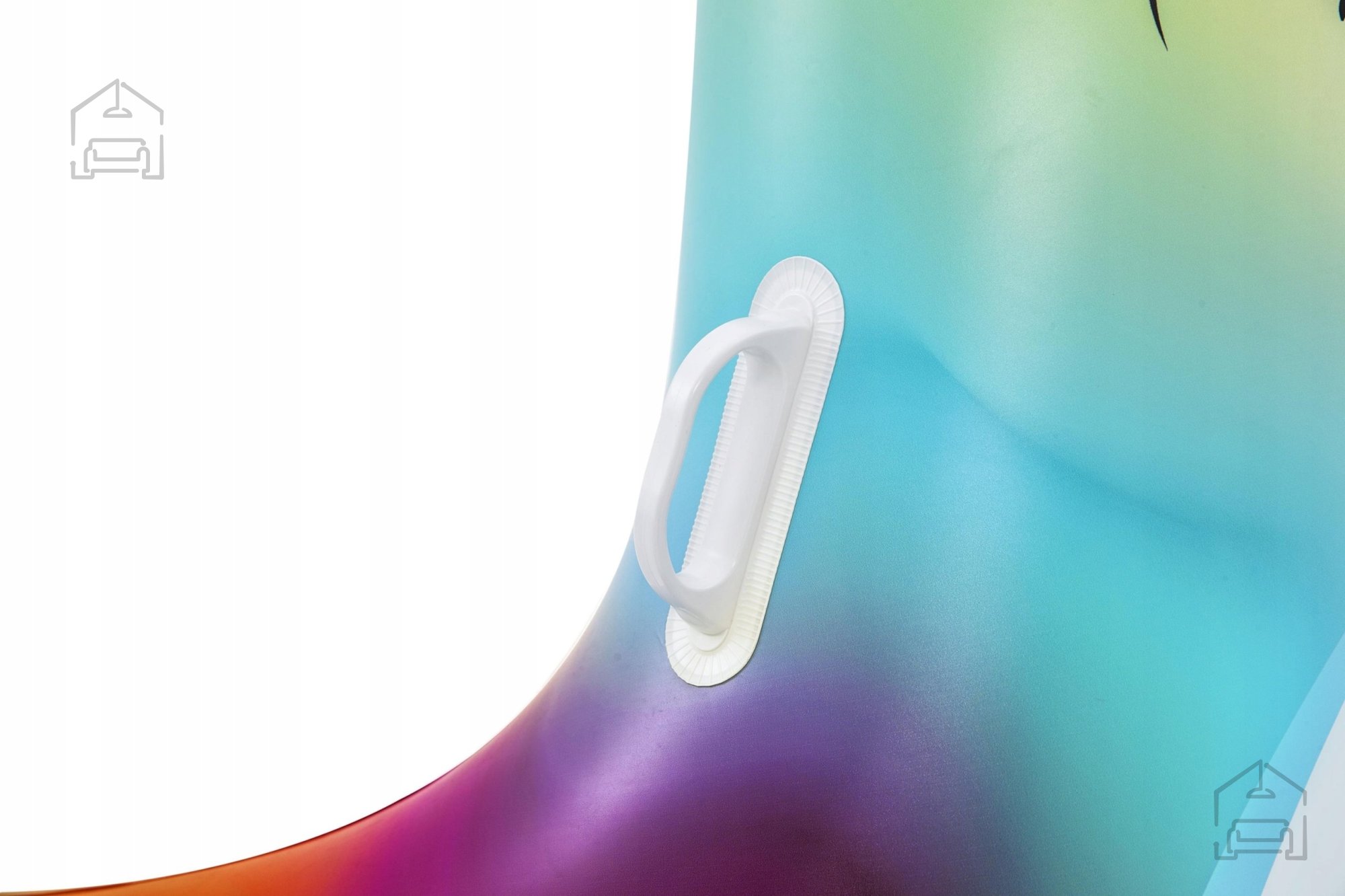 Večbarvna grafika tjulnja prinaša igriv in vesele tone vsaki vodni zabavi. Pisane barve so premišljeno razporejene, da ustvarijo prijeten kontrast modrini vode in sončnim žarkom. Takšna zasnova spodbuja otroke k igri in domišljiji, hkrati pa deluje kot privlačen dodatek k poletni opremi za prosti čas.