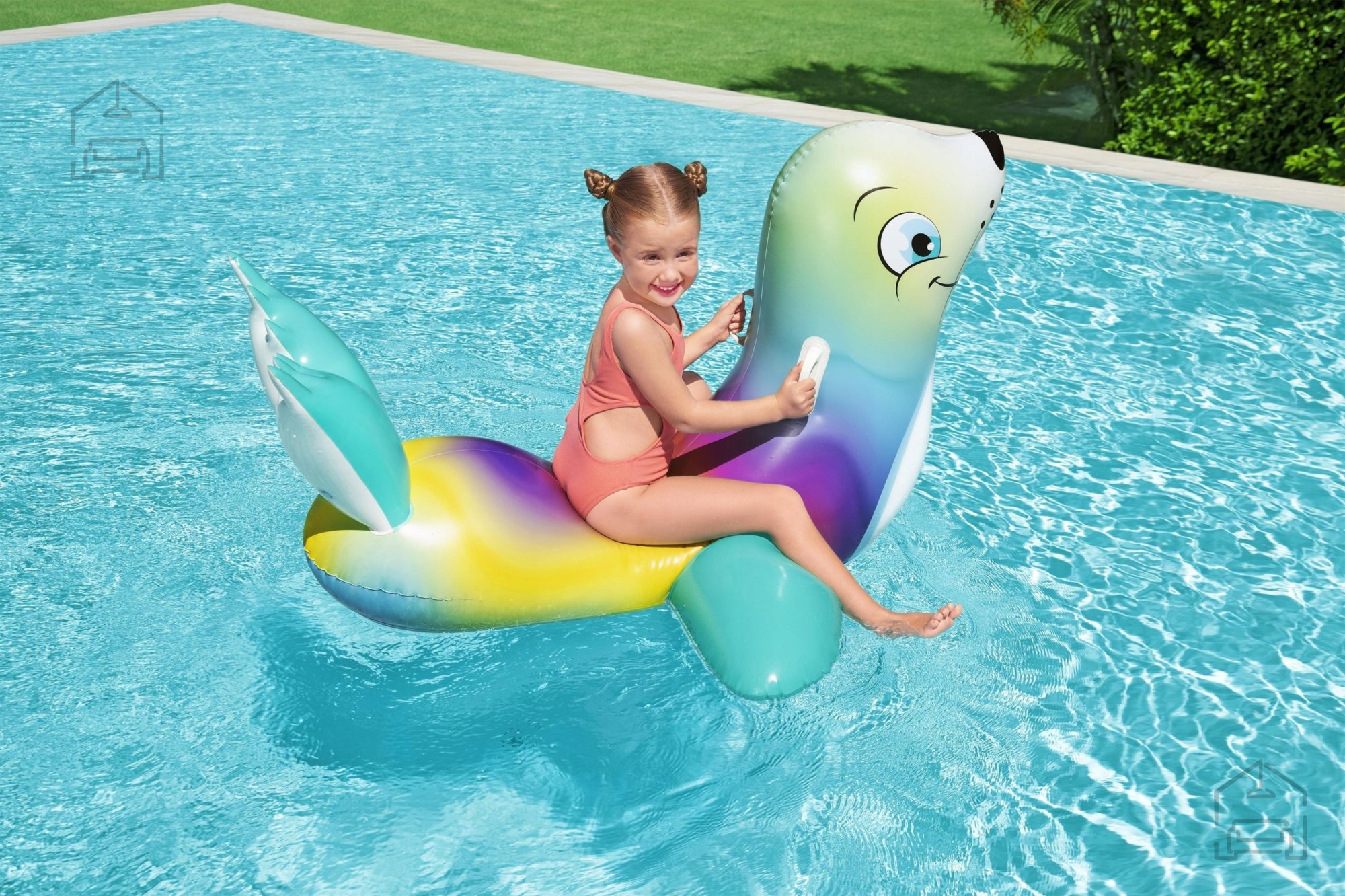 Napihljiv krog v obliki tjulnja je igriv in hkrati funkcionalen pripomoček za brezskrbno uživanje v vodi. Izdelan je iz kakovostnega PVC materiala, ki zagotavlja dolgo življenjsko dobo in odpornost proti poškodbam. Njegove dimenzije 157x114 cm omogočajo udobno uporabo tako otrokom kot tudi odraslim, ki želijo sproščeno lebdeti na vodi. Večbarvna površina in prijazna oblika tjulnja ustvarjata privlačen videz, ki bo zagotovo pritegnil poglede na plaži, jezeru ali domačem bazenu.