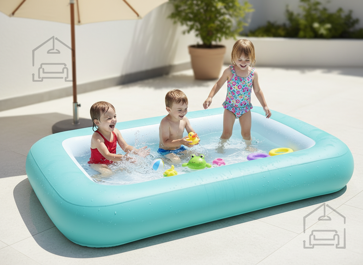 Postavitev bazena je preprosta – potrebujete le nekaj minut, da ga napihnete, napolnite z vodo in pripravite na prvo čofotanje. Prav tako se po koncu sezone hitro sprazni, zloži in pospravi, saj PVC material ne zavzame veliko prostora in je odporen proti deformacijam. To je praktična rešitev za starše, ki iščejo preprost način, kako otrokom zagotoviti poletno zabavo brez zapletenih priprav.