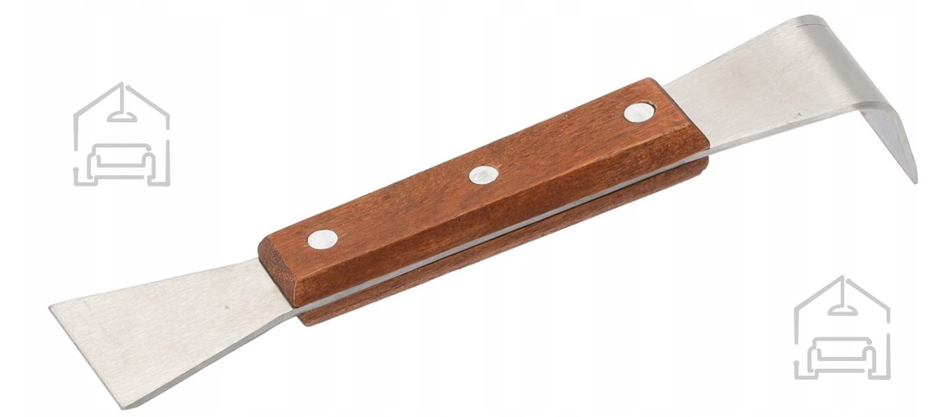 Orodje je izdelano iz nerjavnega jekla, ki je znano po svoji trpežnosti in odpornosti proti vlagi, kislinam ter drugim snovem, s katerimi se čebelar pogosto sreča. Leseni ročaj dopolnjuje kovinski del in zagotavlja naraven občutek v roki, kar zmanjšuje utrujenost pri daljšem delu. Površina ročaja je gladko obdelana, kar preprečuje zdrs tudi, če so roke vlažne ali lepljive od propolisa.