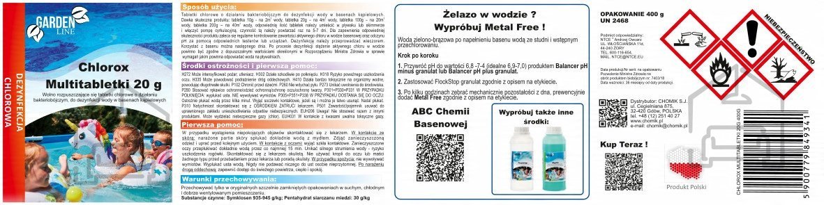 Chlorox multitablete 20 g – Chomik predstavljajo preprosto, varno in zanesljivo rešitev za vse, ki želijo brezskrbno uživati v čisti vodi svojega bazena. S pravilno uporabo boste poskrbeli za dolgo življenjsko dobo bazenske opreme in prijetno kopalno izkušnjo v vseh letnih časih.