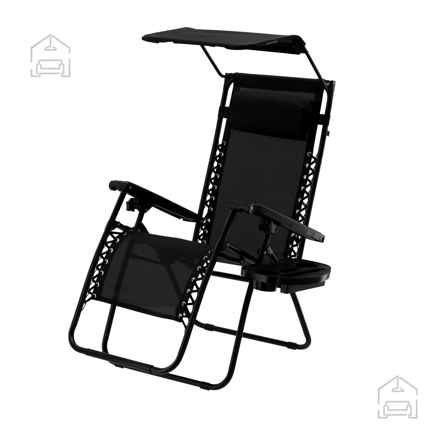 Ležalnik za plažo z baldahinom - črn - LEZ9962