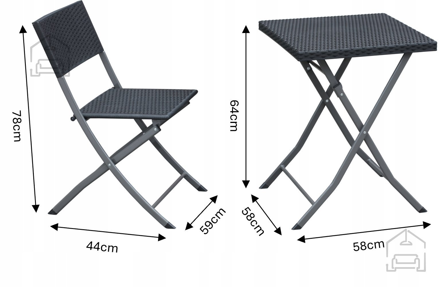 Zaradi stabilne, prašno lakirane konstrukcije elementov kompleta so ti zelo vzdržljivi. Zložljivi elementi so izjemno praktična rešitev, ki olajša shranjevanje večjega števila stolov na majhnem prostoru. Ta rešitev vam omogoča preprosto shranjevanje kompleta.