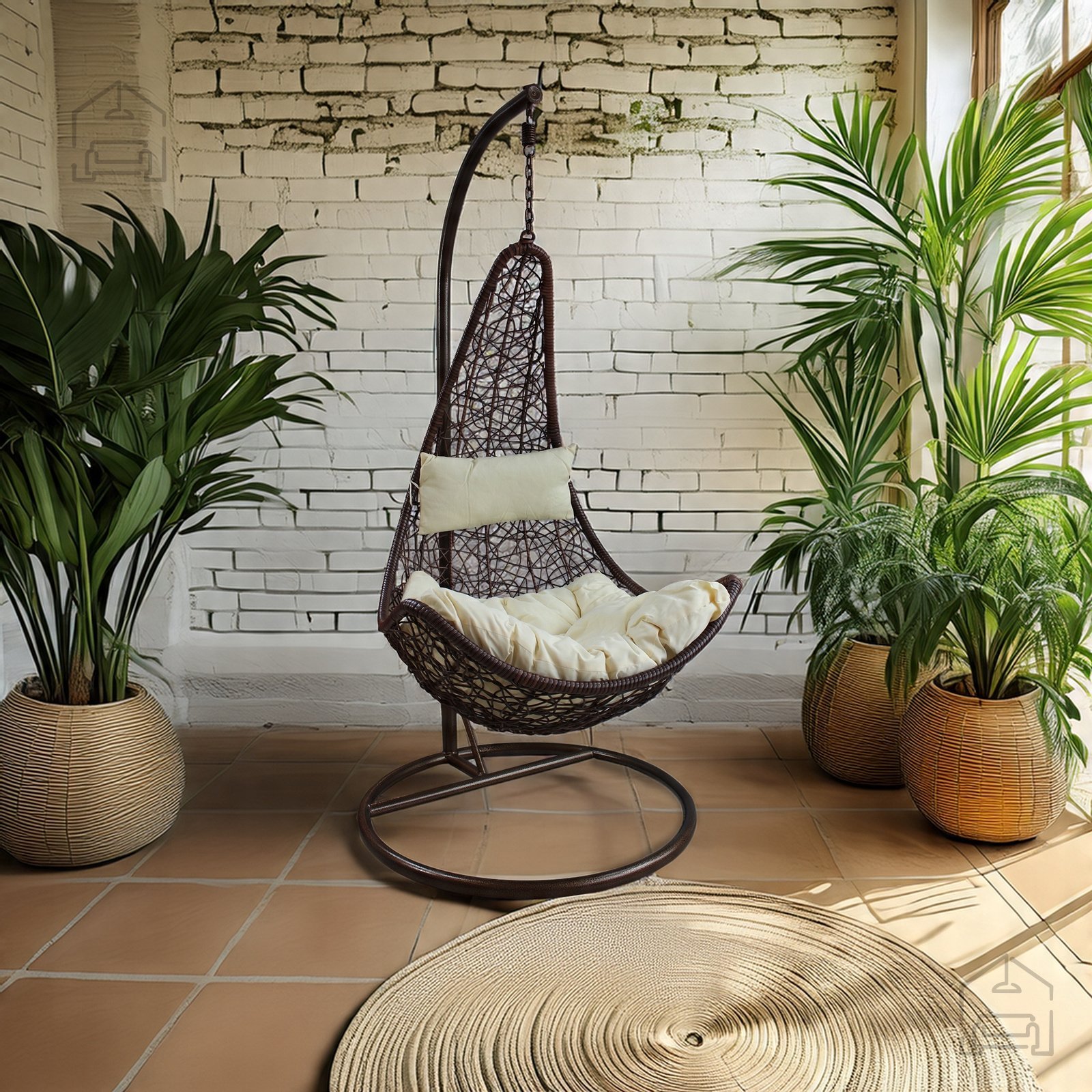 Viseča oblika fotelja omogoča prijetno zibanje in sproščanje po napornem dnevu. Košara je ergonomsko oblikovana, tako da se prilagodi telesu in nudi podporo hrbtu ter vratu. V kompletu so priloženi vsi potrebni deli za montažo – jeklene cevi, vzmet, košara in blazina. Blazina povečuje udobje in poskrbi za dodatno mehkobo pri sedenju. Vse komponente so zasnovane tako, da omogočajo hitro sestavljanje brez posebnega orodja.