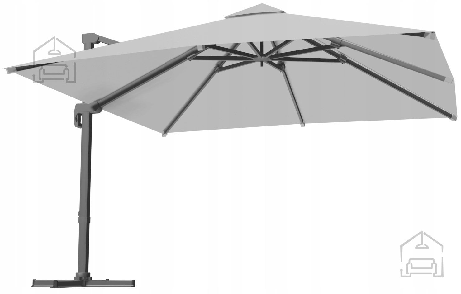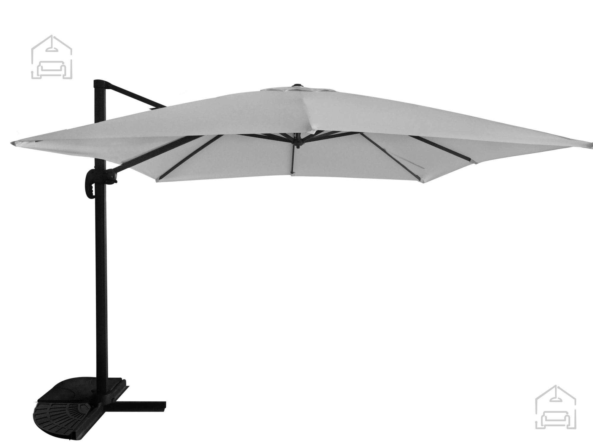 Za dodatno oporo skrbi križni podstavek iz jekla, ki se po potrebi dodatno obteži ali pritrdi na tla. To bistveno zmanjša možnost prevrnitve pri močnejšem vetru. Na voljo so posebne uteži (niso vključene), ki jih lahko enostavno namestite na podstavek.