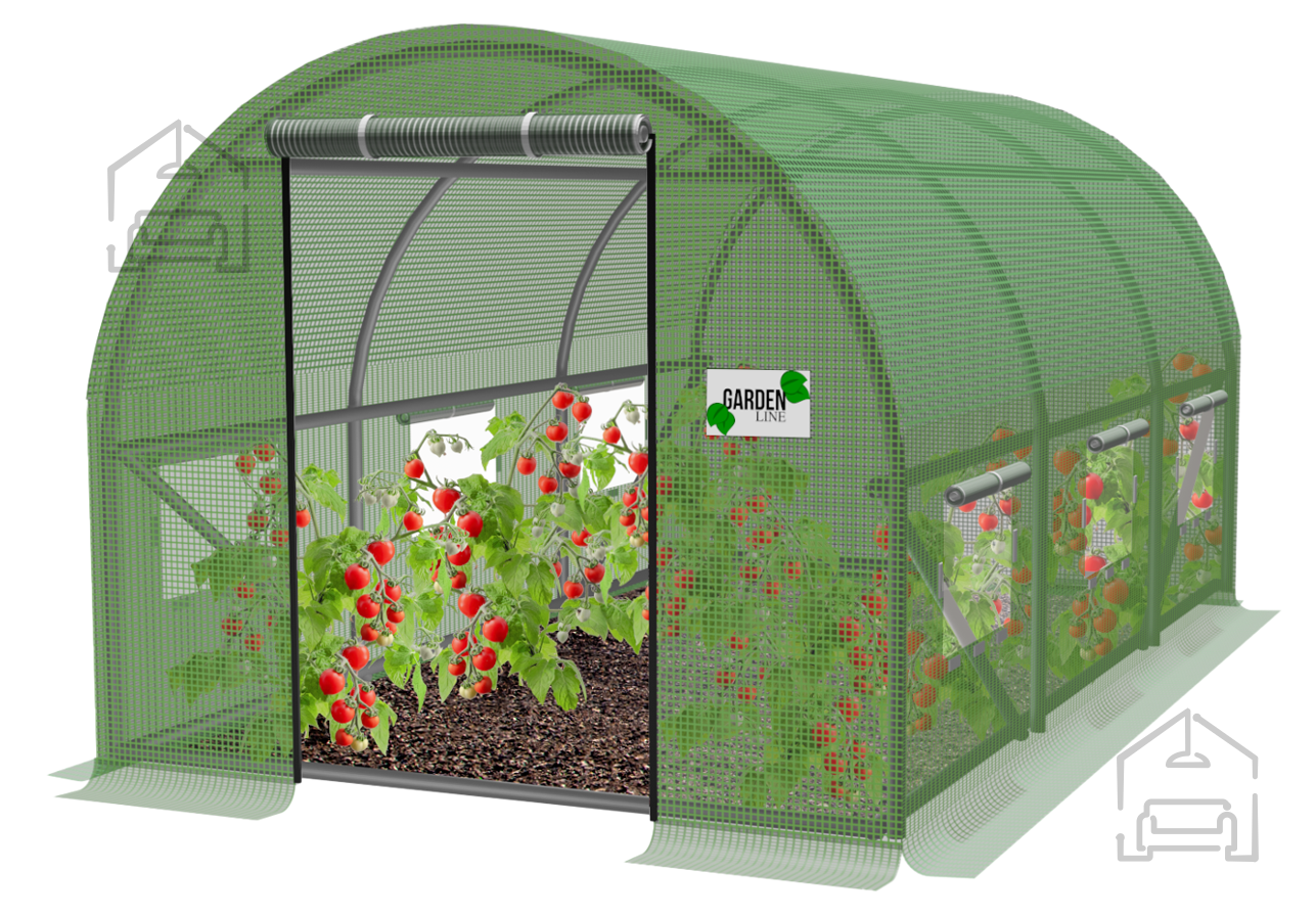 Rastlinjak je opremljen z več funkcionalnimi elementi, ki omogočajo udobno uporabo in dobro prezračevanje. Šest velcro oken z mrežami proti komarjem omogoča kroženje zraka ter preprečujejo vdor insektov. Spredaj so široka rolo vrata dimenzije 80×180 cm, ki se zapirajo z zadrgo. Takšna izvedba omogoča hiter in enostaven dostop do notranjosti tunela ter olajša prezračevanje v toplejših dneh.