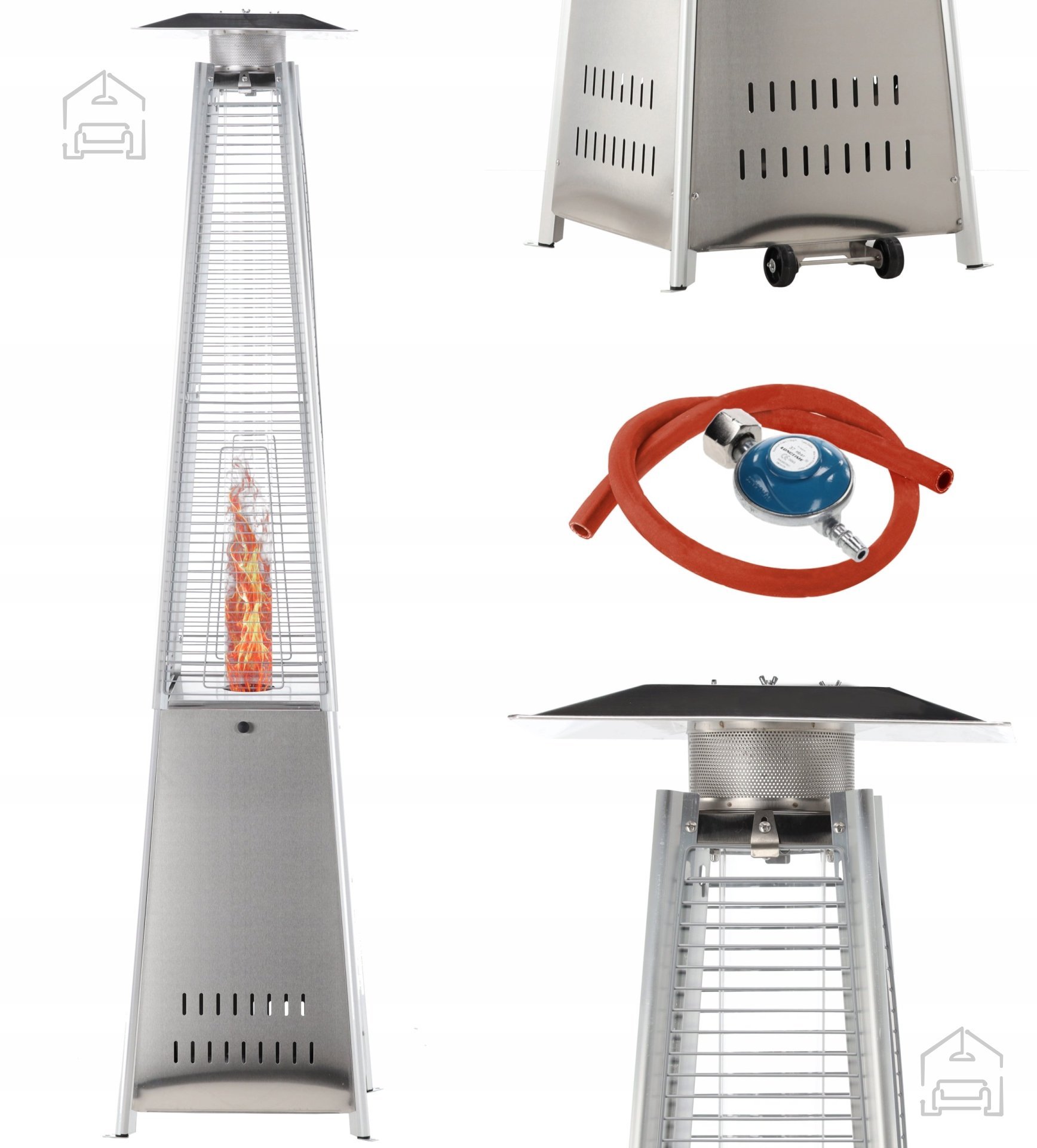 Dimenzije 45,5 × 9,2 × 227 cm omogočajo optimalno porazdelitev toplote, ne da bi zavzel preveč prostora. Zaradi svoje višine in kvadratne oblike se toplota enakomerno širi v vse smeri, kar zagotavlja udobje za več oseb hkrati. To ga dela popolno izbiro za domačo uporabo, pa tudi za gostinske lokale, hotele, kavarne ali dogodke na prostem.