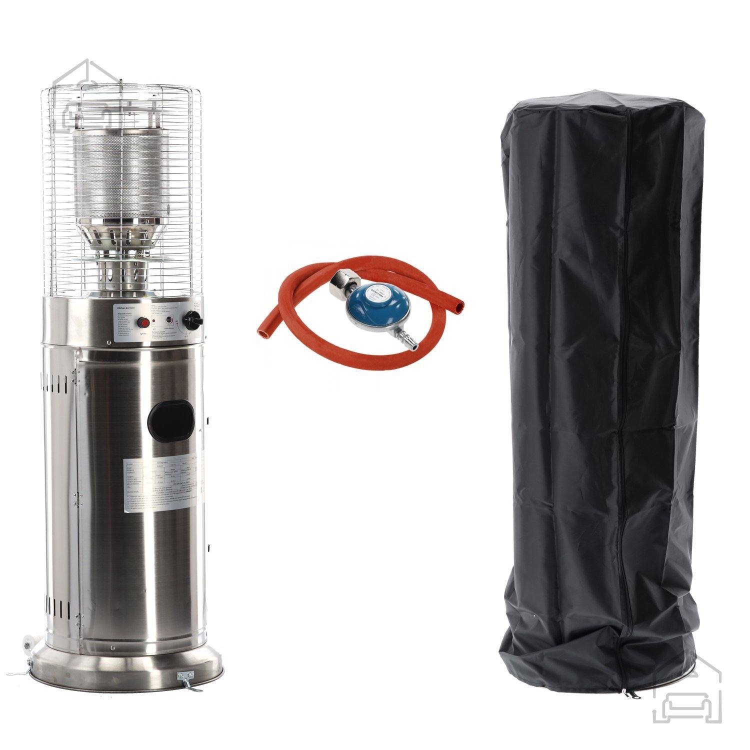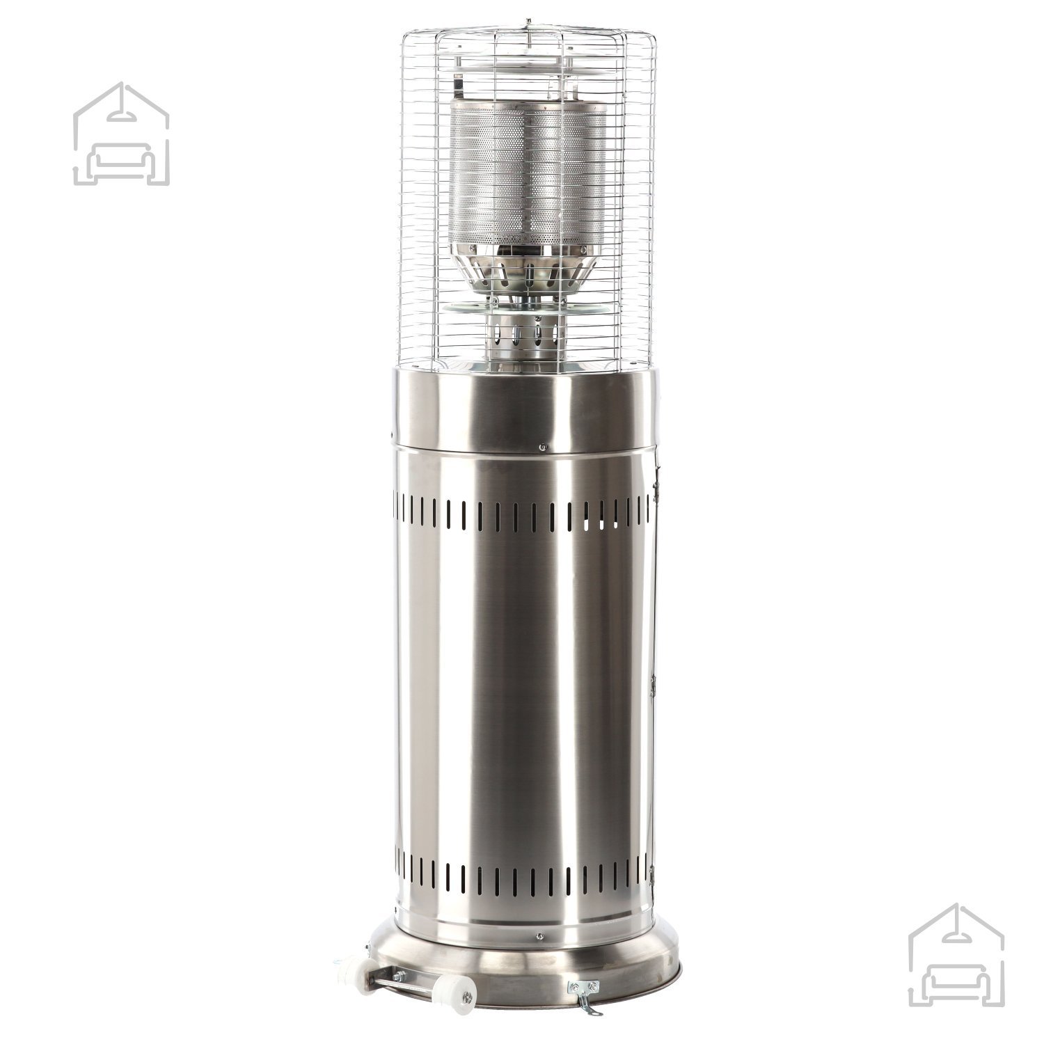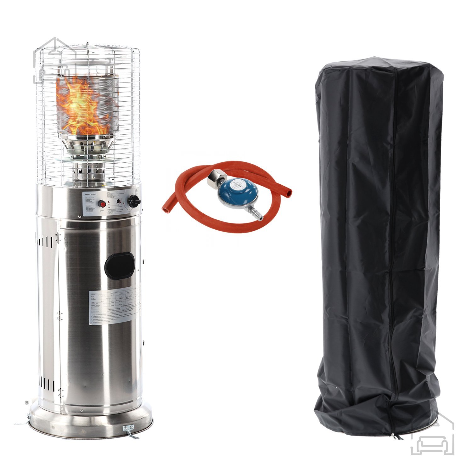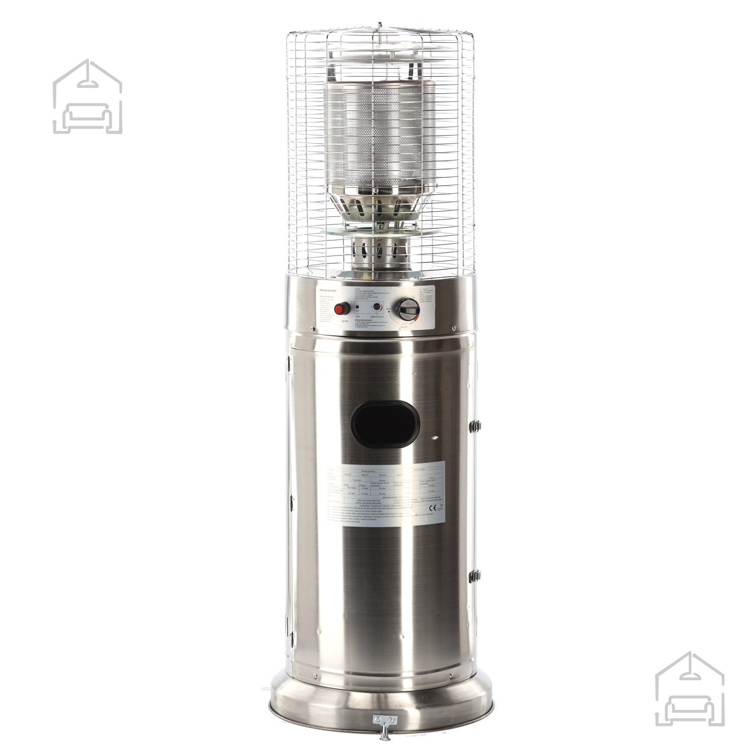 Za varnost skrbi stabilna konstrukcija iz kakovostnega nerjavečega jekla, ki je odporna na korozijo, vremenske vplive ter mehanske poškodbe. Vgrajeno varnostno stikalo proti prevrnitvi in samodejni izklop plina zagotavljata brezskrbno uporabo tudi ob močnejšem vetru. Z intuitivnim regulatorjem lahko enostavno uravnavate temperaturo in s tem prilagodite raven toplote svojim željam – od prijetnega ogrevanja do intenzivnejše toplote za hladne večere.