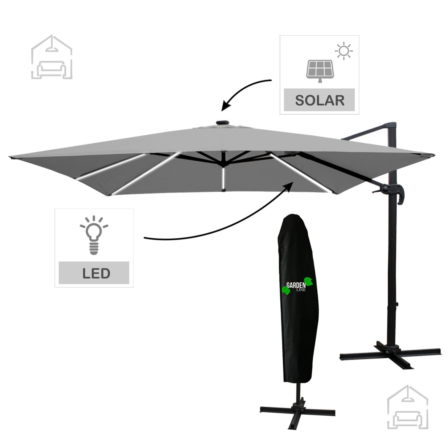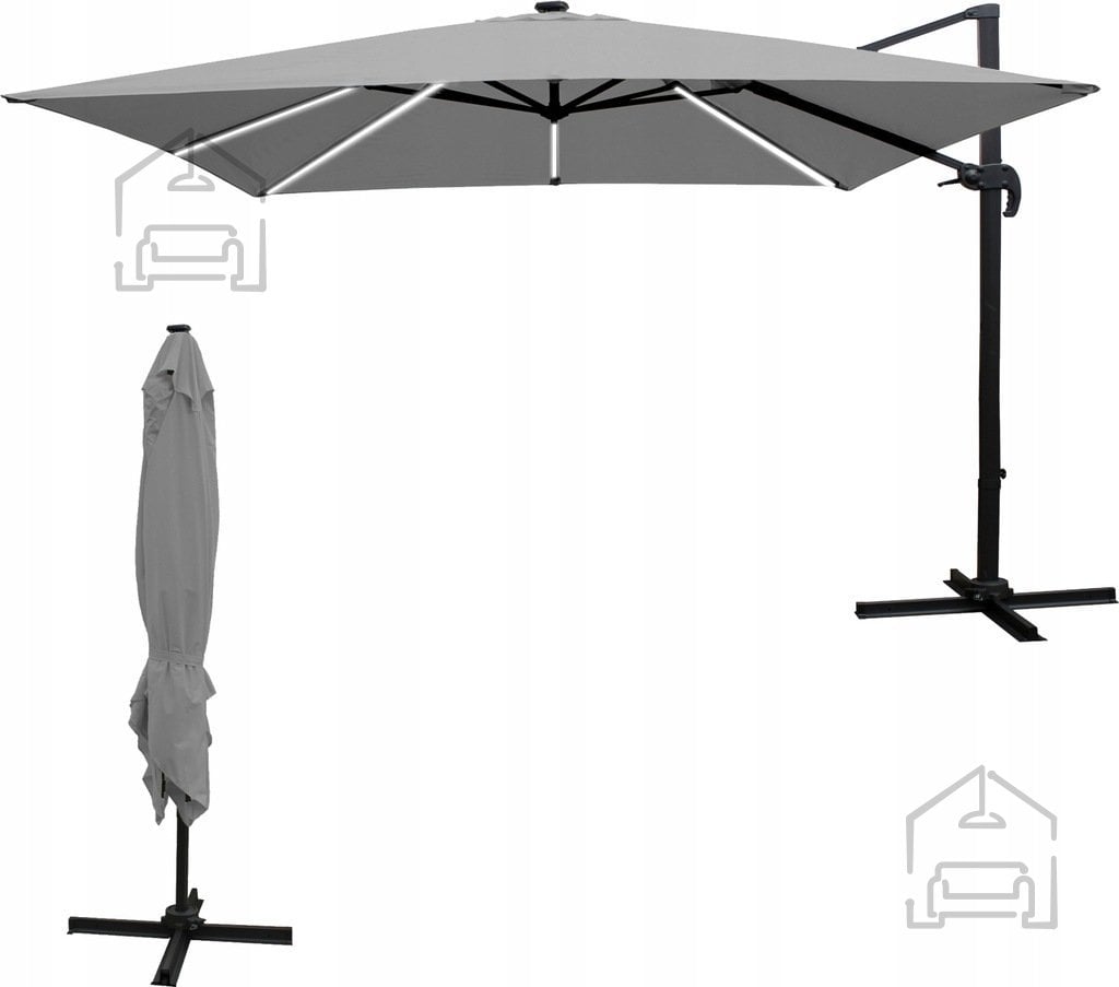 Parasol je izdelan iz visokokakovostnega materiala. Senčnik je izdelan iz vodoodporne mase. Naš izdelek je opremljen z močnim ogrodjem iz prašno barvanega jekla. V senčniku se nahaja poseben prezračevalni otvor. Poleg tega senčnik vsebuje vodoodporno prevleko iz poliestra v črni barvi.