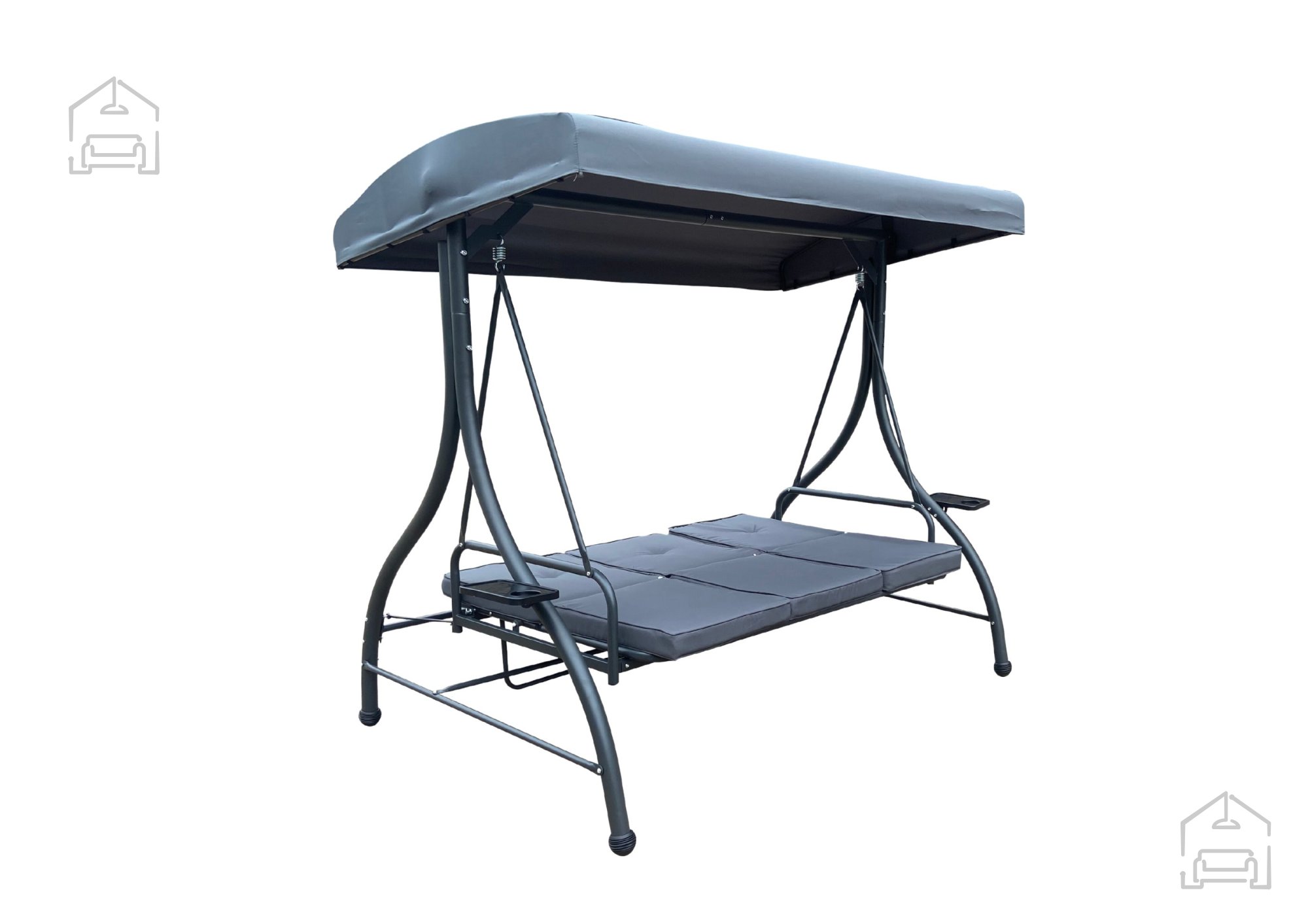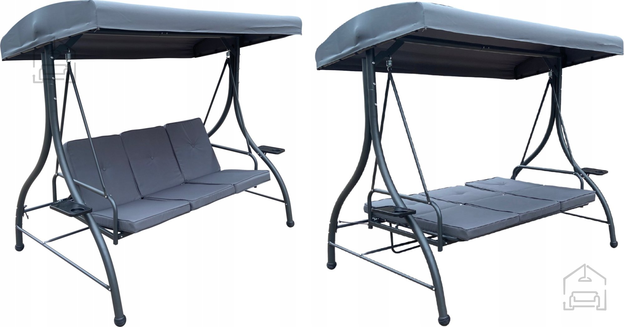 Zahvaljujoč funkciji ležalnika ter dodatnim priročnostim, kot so držala za pijačo, gugalnica združuje funkcionalnost z edinstvenim slogom.