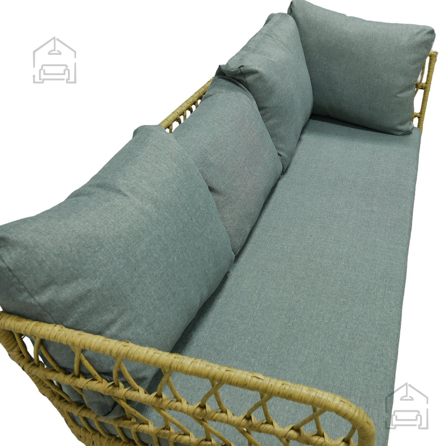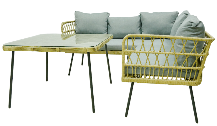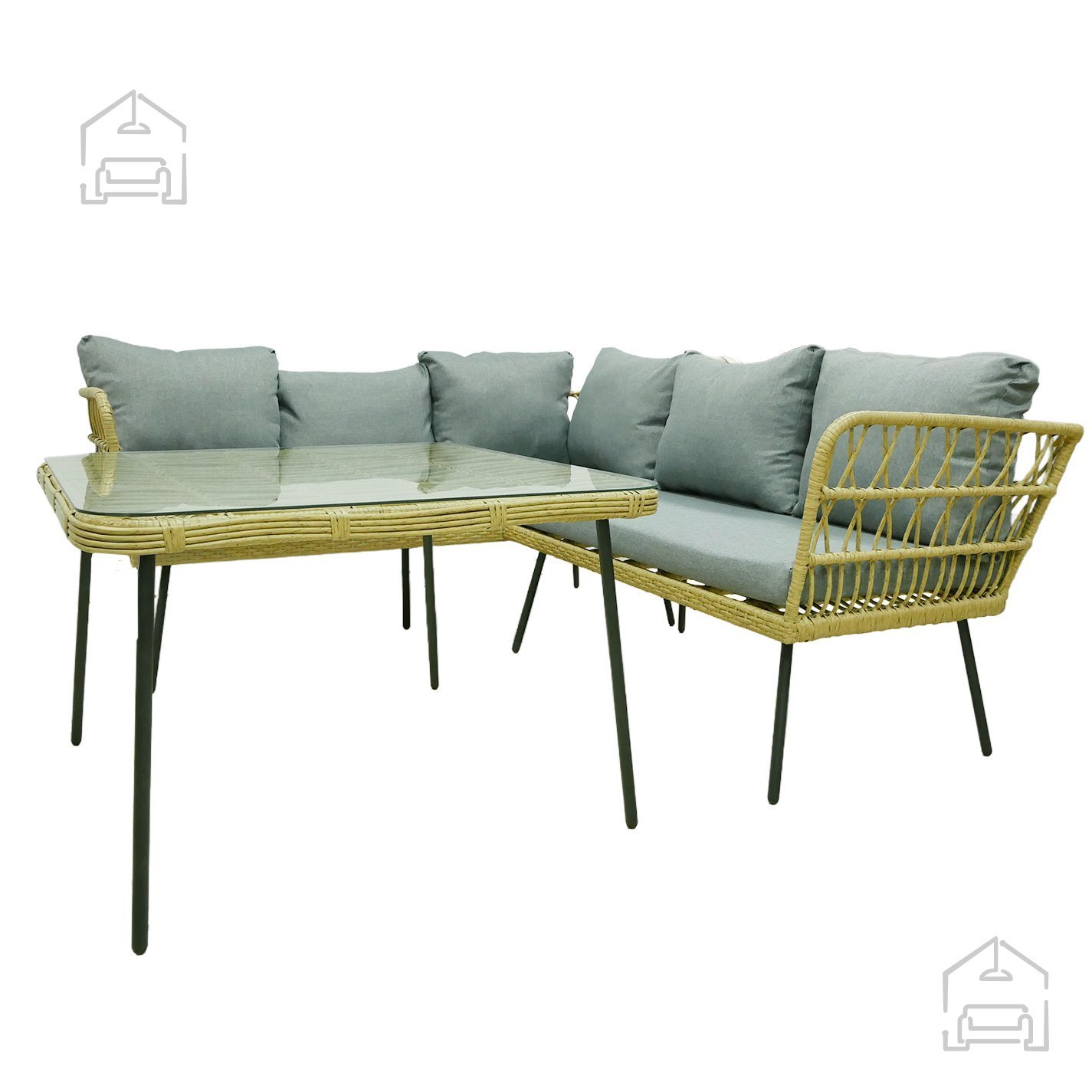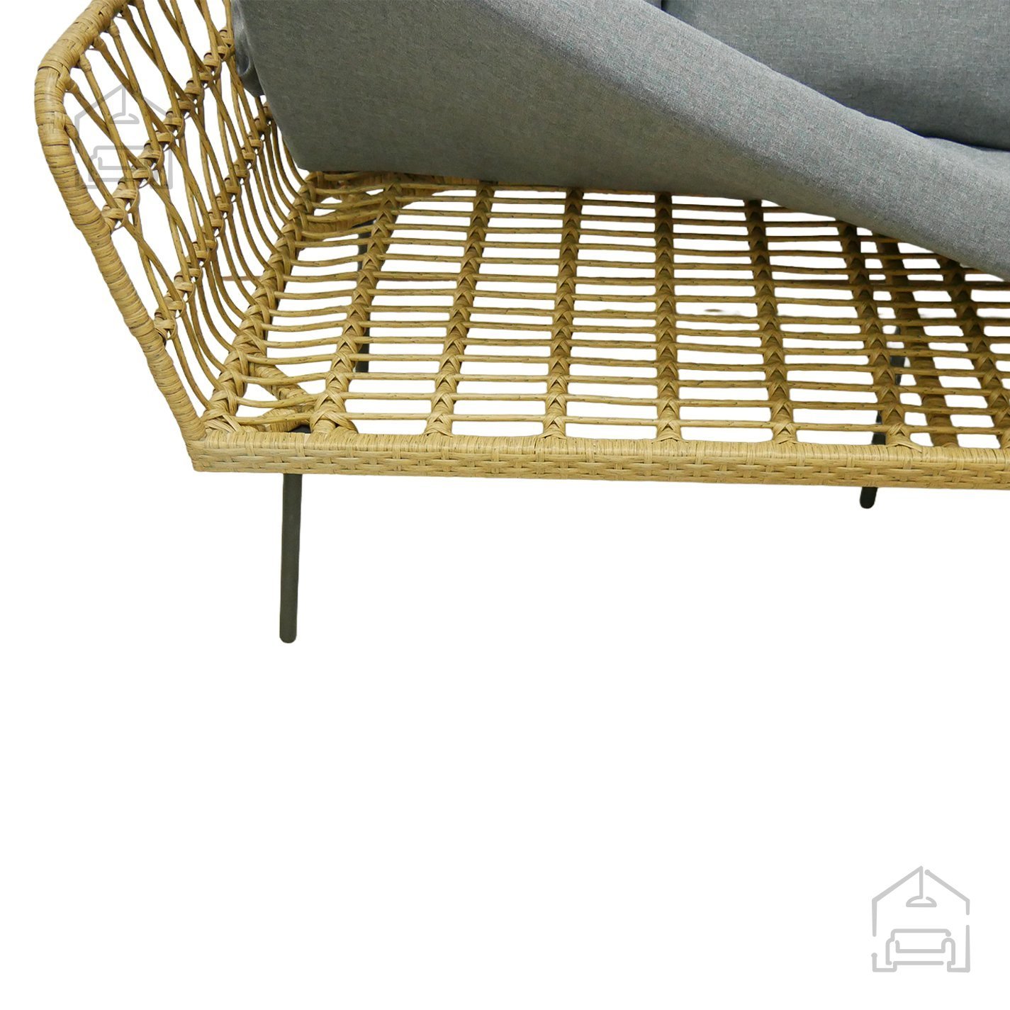 Učinkovit komplet, ki se odlično obnese na terasi, na vrtu ali v kotičku za sprostitev. Izdelan je iz visokokakovostnih materialov, kar zagotavlja trajnost, udobje in odpornost na vremenske razmere. Slogovni ratan v kombinaciji z udobnimi blazinami ustvarja popoln prostor za počitek.
