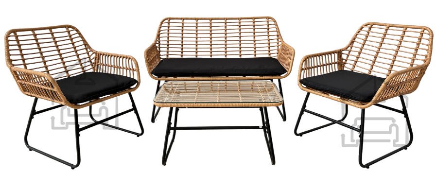 Stilski in funkcionalni komplet vrtnega pohištva, ki se odlično obnese na terasi, v vrtu ali na balkonu. Trdna jeklena konstrukcija, eleganten ratan ter udobne blazine zagotavljajo trajnost in udobje pri uporabi. Steklena plošča mizice doda eleganco in olajša vzdrževanje čistoče.