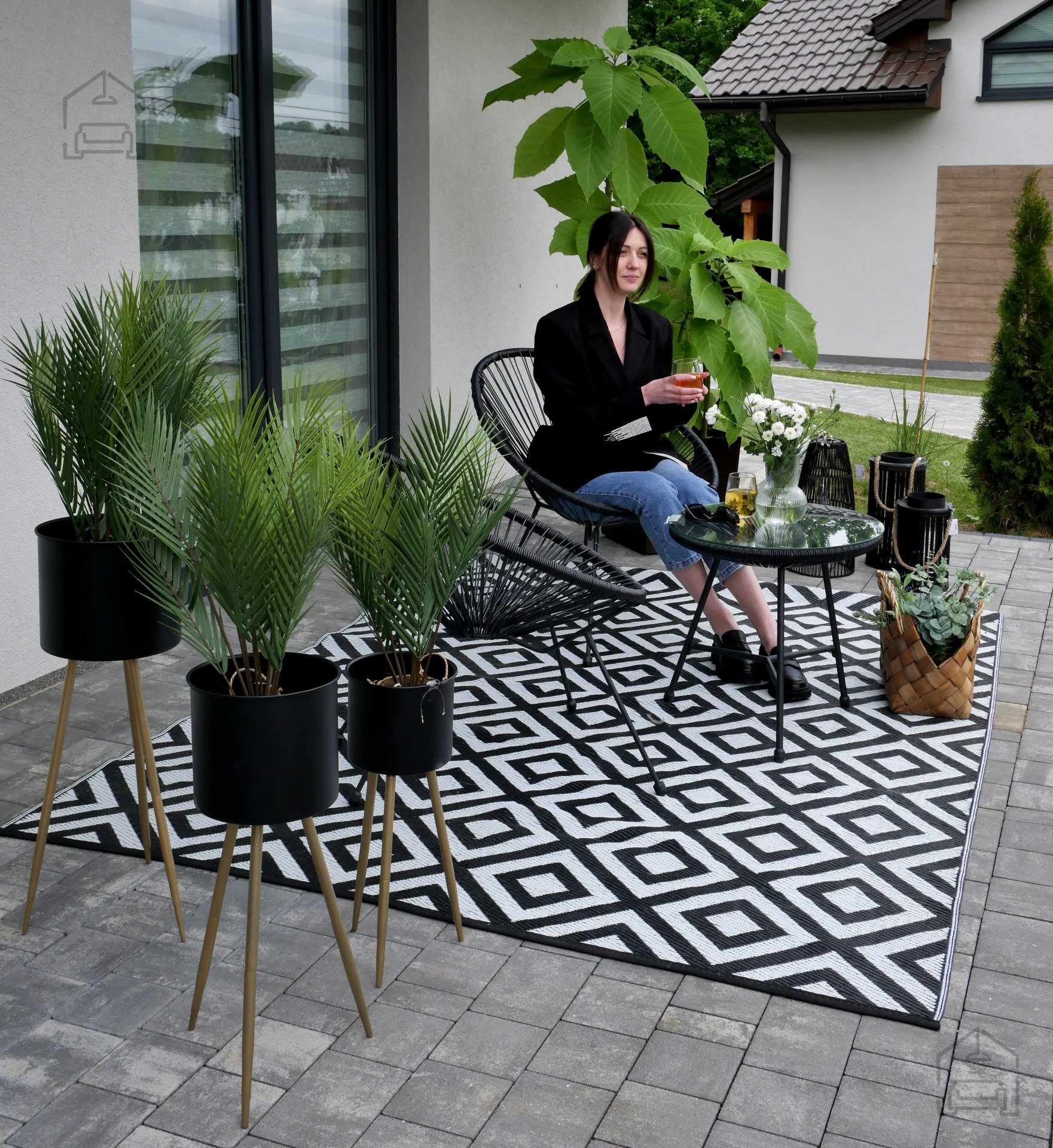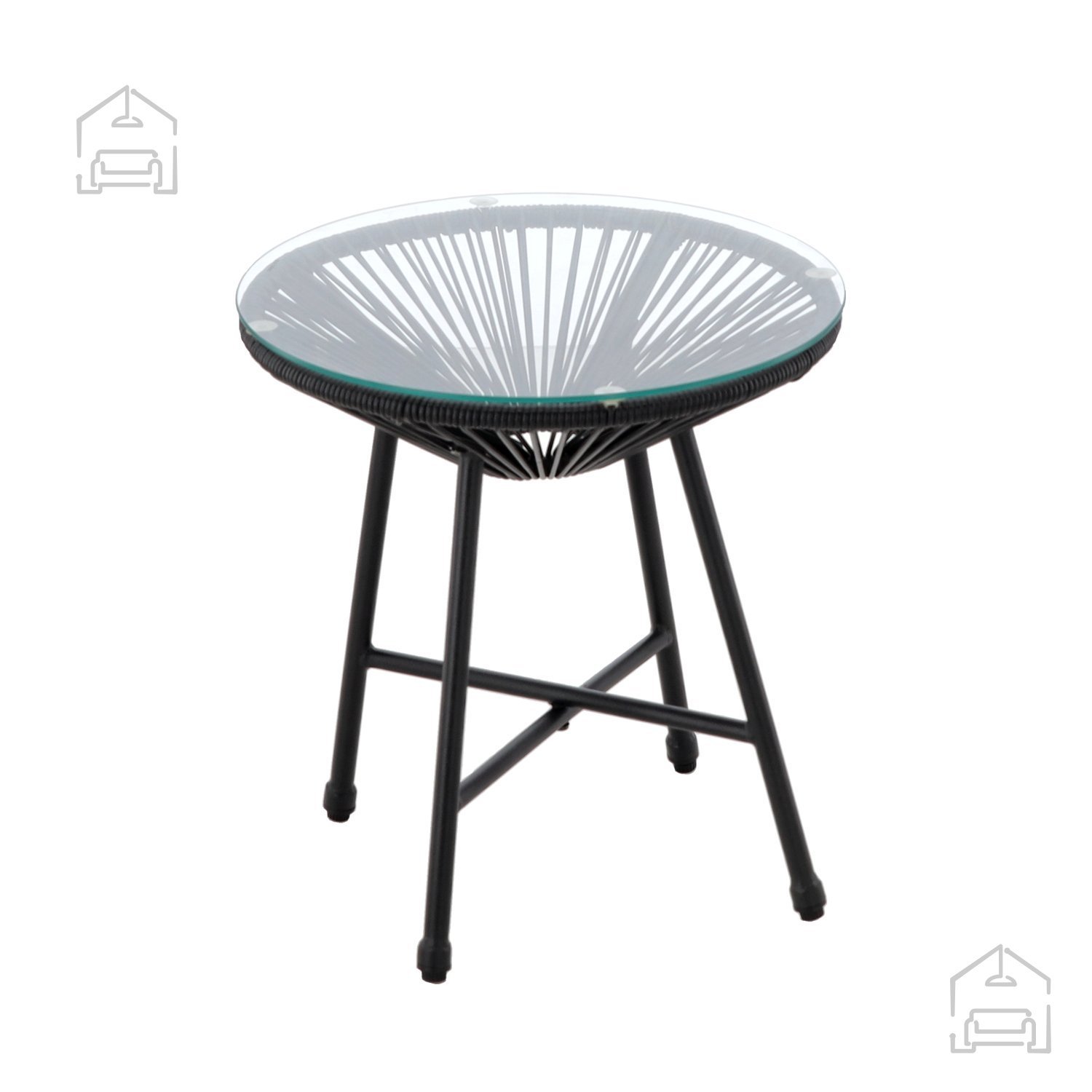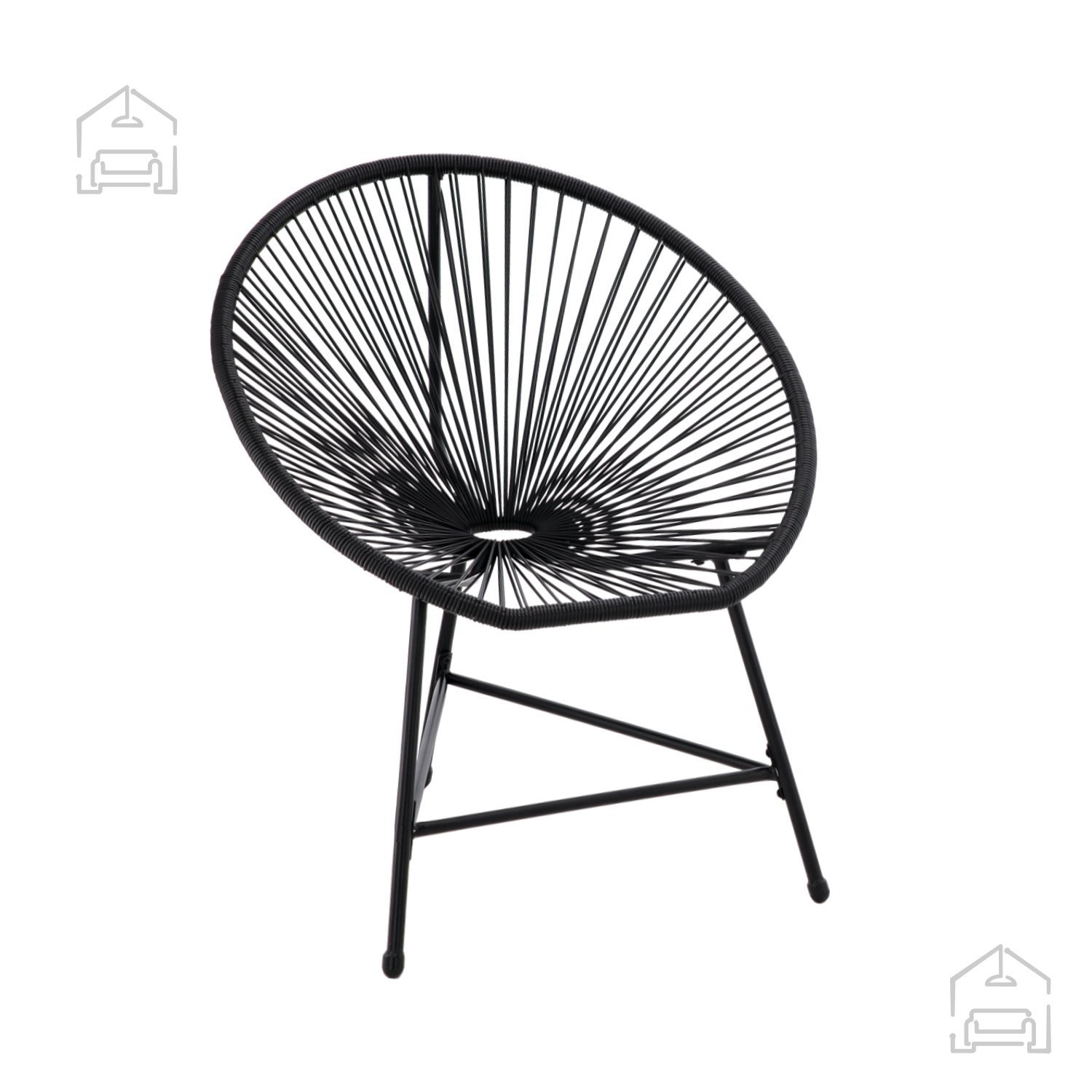 Stilski in funkcionalni komplet vrtnega pohištva v črni barvi. Sestavljen je iz dveh udobnih stolov ter elegantne okrogle mizice s stekleno ploščo. Izdelan iz visokokakovostnih materialov zagotavlja trpežnost in odpornost na vremenske razmere. Odlična izbira za vrt, balkon ali teraso.