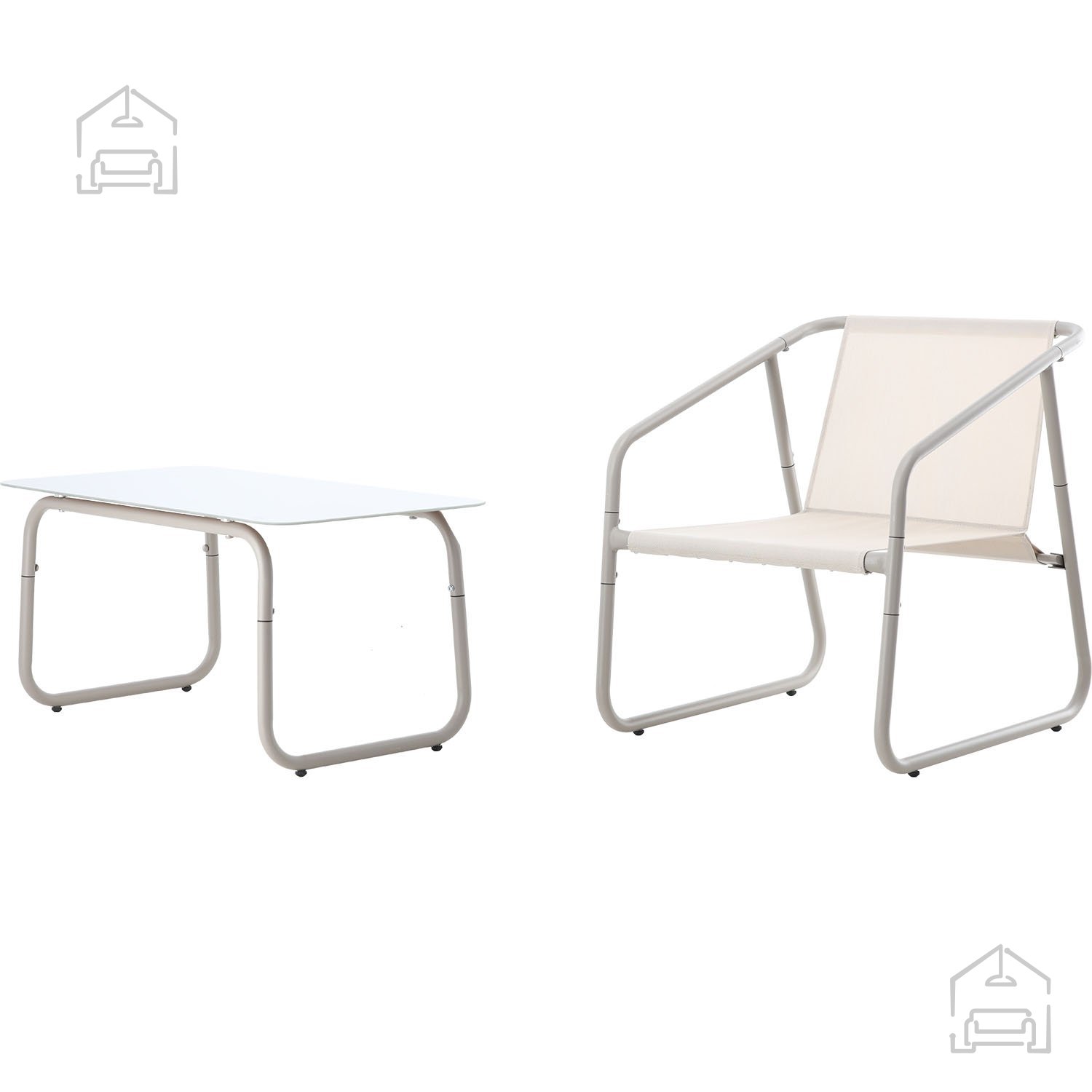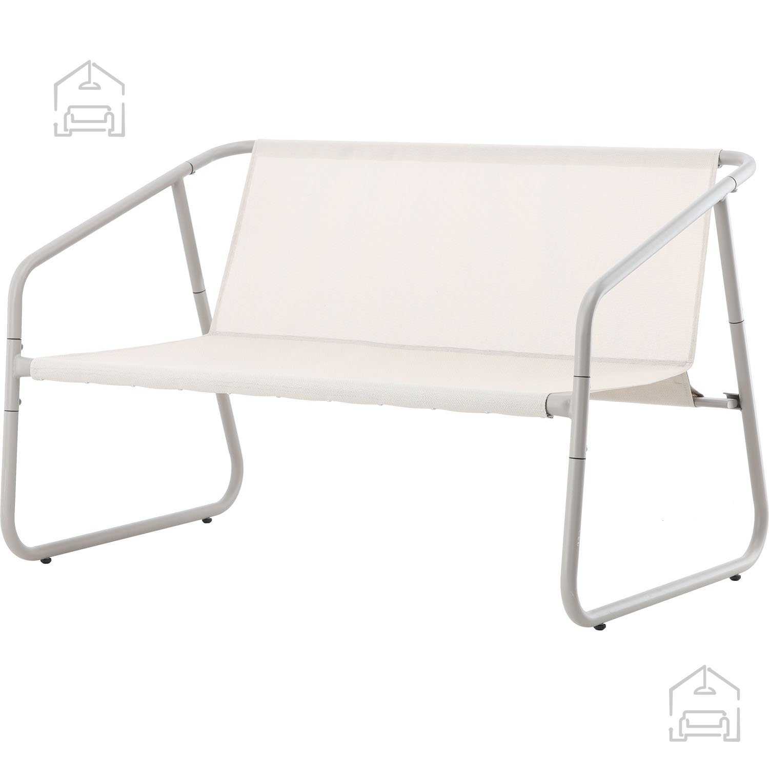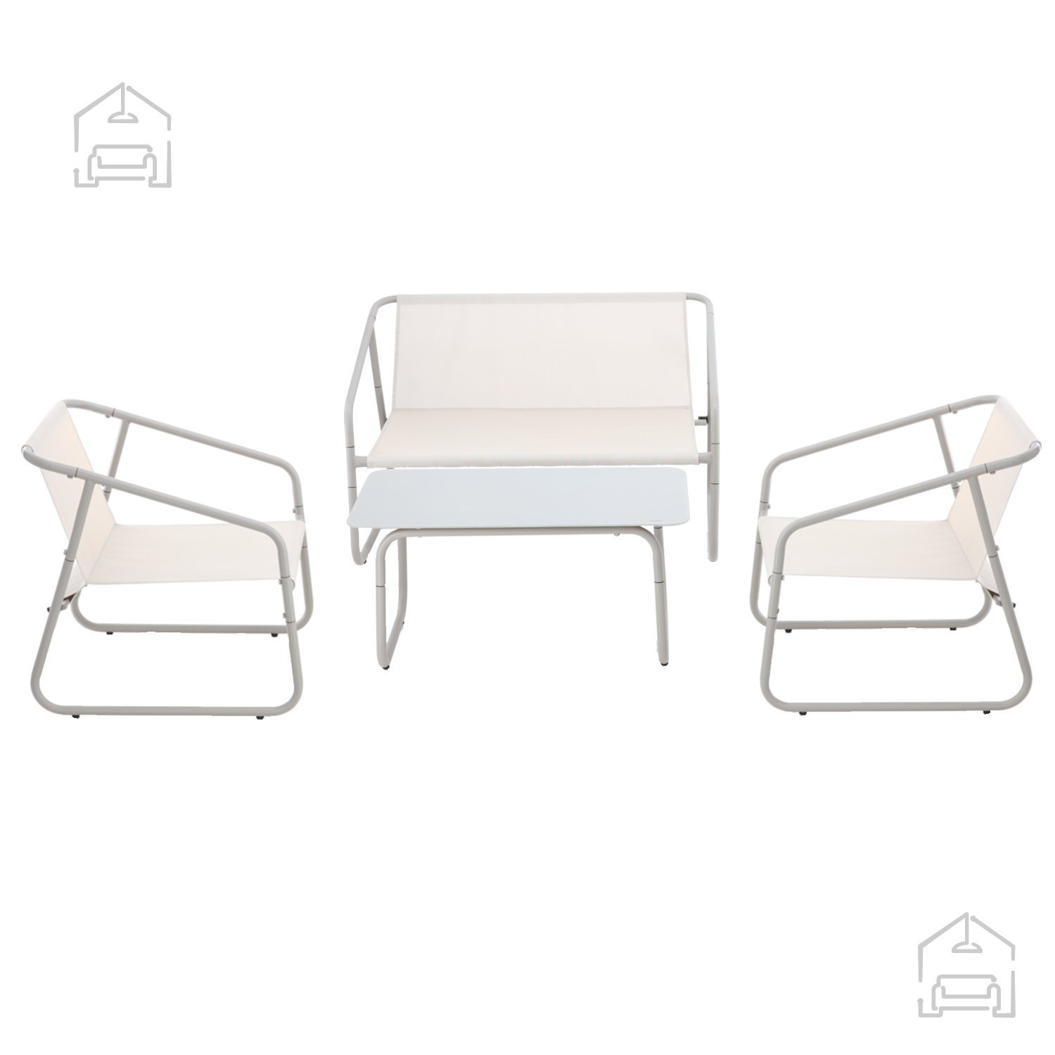Zestav pohištva za vrt vsebuje dvosed, dva stola in mizico.