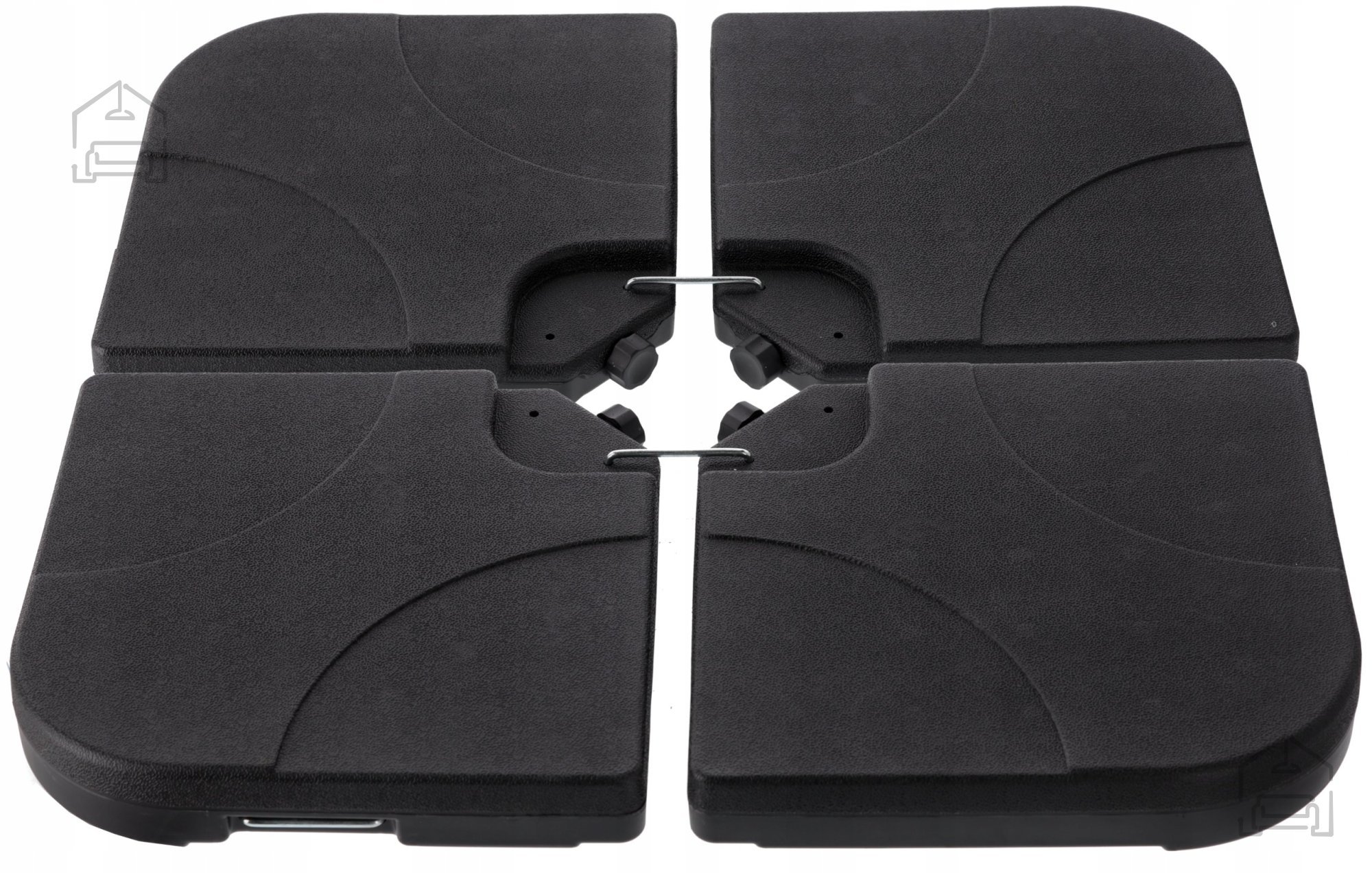 Material: odporen na UV in vremenske vplive Barva: črna Kapaciteta: 4×15 l (napolnitev z vodo) Teža prazna: 8,5 kg neto / 9,5 kg bruto Teža polna: 60–80 kg Oblika elementa: u z železnim ročajem Povezava: hitra montaža v nekaj minutah