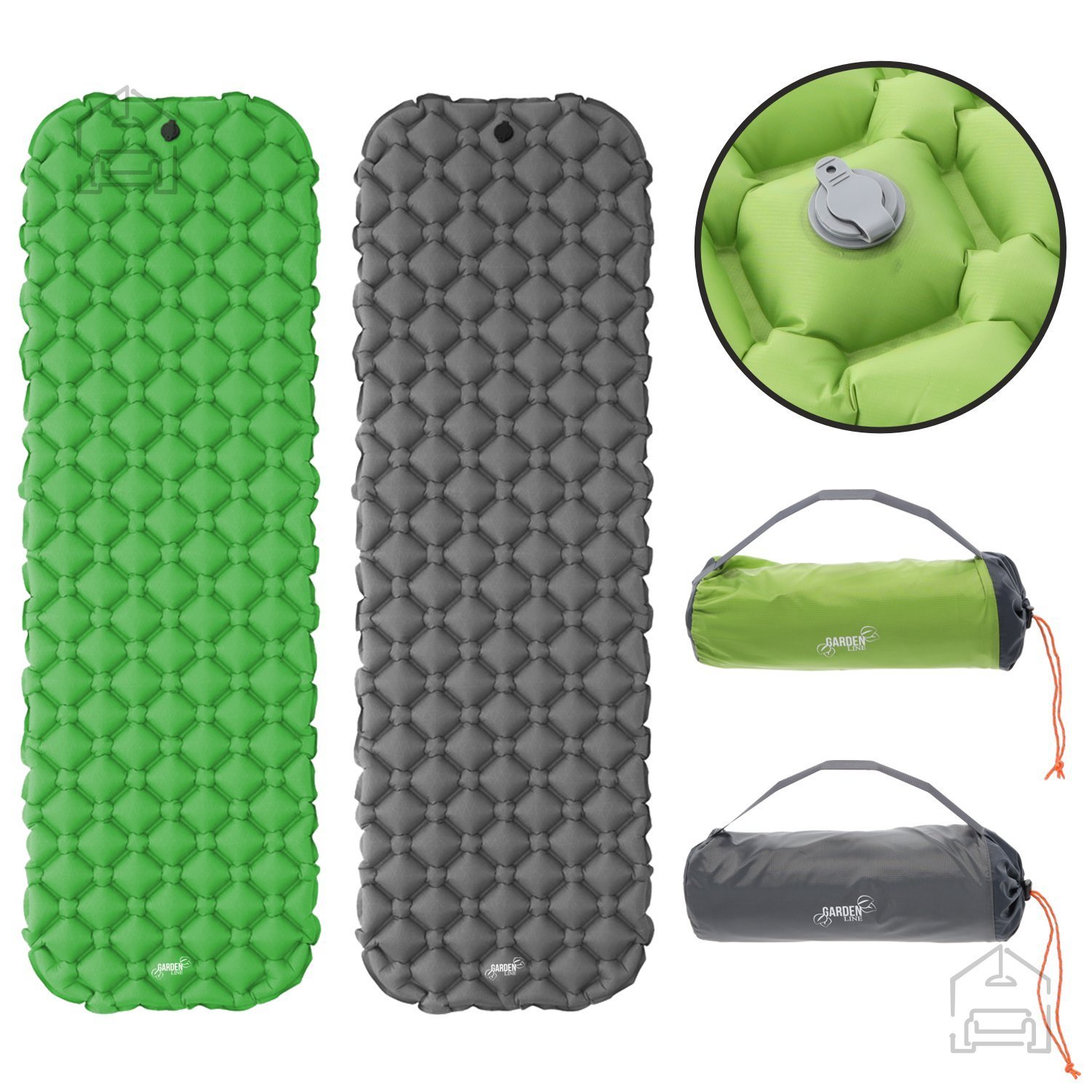 Material: 40D ripstop tkanina + najlon + TPU Teža: 450 g Barva: siva, zelena Konstrukcija: večkomorna, udobna, izolira od tal Lastnosti: lahka, zložljiva, odporna na obrabo Vključuje: prevleka za transport Maks. obremenitev: 100 kg