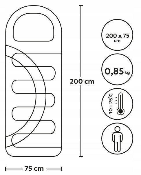 Spalna vreča CAM9356 je zasnovana z mislijo na optimalno uravnavanje toplote. Temperaturno območje udobja od +10 °C do +25 °C pomeni, da se odlično obnese v toplejših spomladanskih in poletnih dneh, hkrati pa nudi dovolj zaščite v nekoliko hladnejših nočeh. Oblikovana kapuca, ki se lepo prilega glavi, zmanjšuje izgubo toplote in preprečuje, da bi hlad vdiral skozi zgornji del spalne vreče. Tako ostanete oviti v prijetno toplino tudi, ko se temperatura ponoči nekoliko spusti.